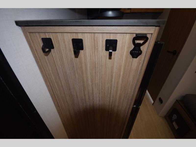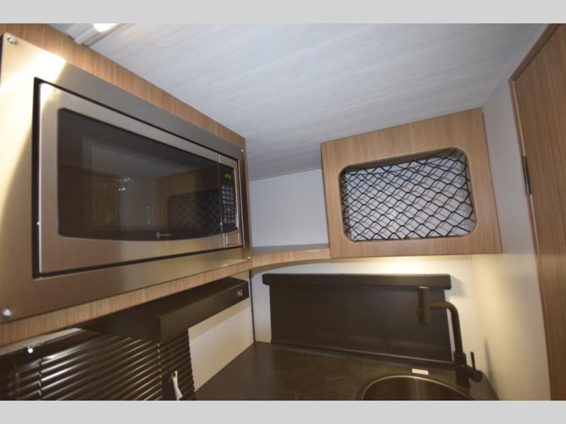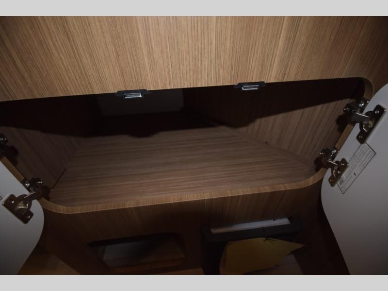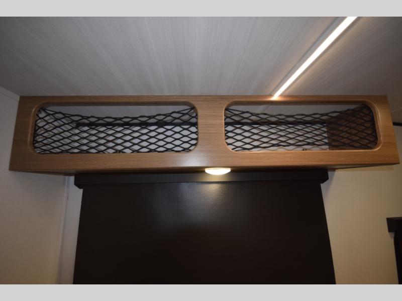 Overhead cabinets throughout the trailer keep your gear, clothes, and camping essentials neatly stowed. -