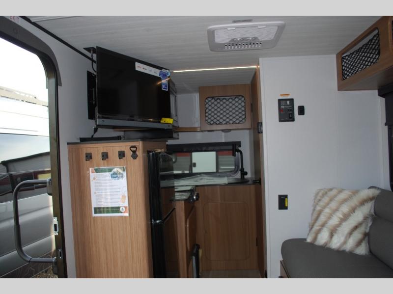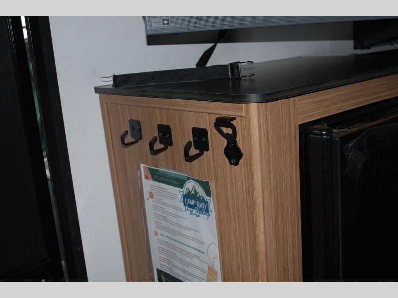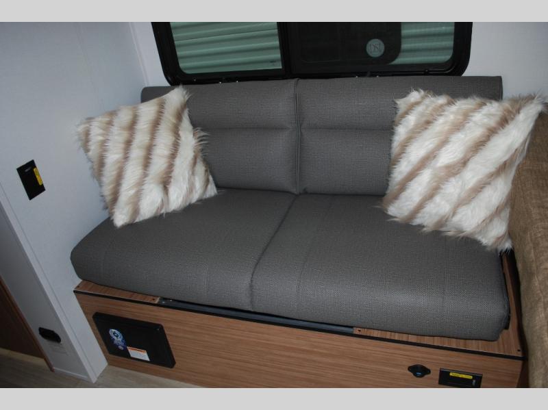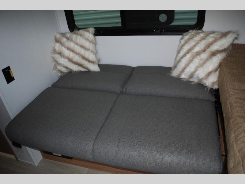 This travel trailer is ideal for weekend getaways or extended road trips! The full bathroom provides all the amenities you need, while the spacious 54" X 74" bed ensures a restful night's sleep. Moreover, overhead cabinets offer ample storage for your belongings, and the TV provides entertainment for downtime. The refrigerator keeps your favorite snacks and drinks fresh, and additional overhead cabinets offer extra storage. In addition, the 9' awning provides shade and protection from the elements, creating a comfortable outdoor living space.
