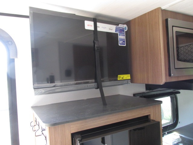 This travel trailer is ideal for weekend getaways or extended road trips! The full bathroom provides all the amenities you need, while the spacious 54" X 74" bed ensures a restful night's sleep. Moreover, overhead cabinets offer ample storage for your belongings, and the TV provides entertainment for downtime. The refrigerator keeps your favorite snacks and drinks fresh, and additional overhead cabinets offer extra storage. In addition, the 9' awning provides shade and protection from the elements, creating a comfortable outdoor living space.