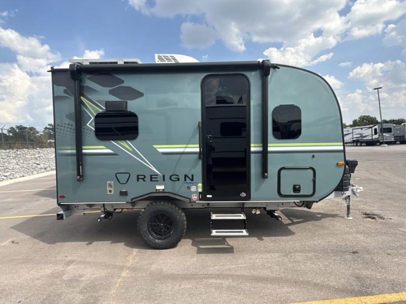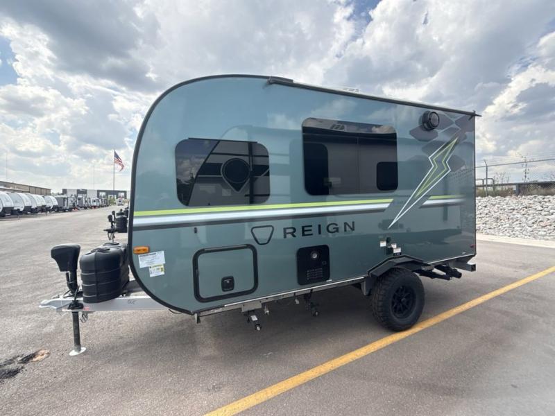 The Reign travel trailers by Keystone are premium single-axle units that are sure to make an impression at the campground. Each one is built with an exclusive automotive-finished aluminum exterior, a walkable roof, and a 100% composite floor for added durability. There are also tinted safety glass windows, quick drop stabilizer jacks, and an exterior shower with hot and cold water. The European inspired interior design is unique and cozy, and the 78" interior height will give you plenty of space to move about. You will also enjoy the ultra bright LED light strip and solid surface countertops in the kitchen, along with blackout night shades, and many more interior comforts.