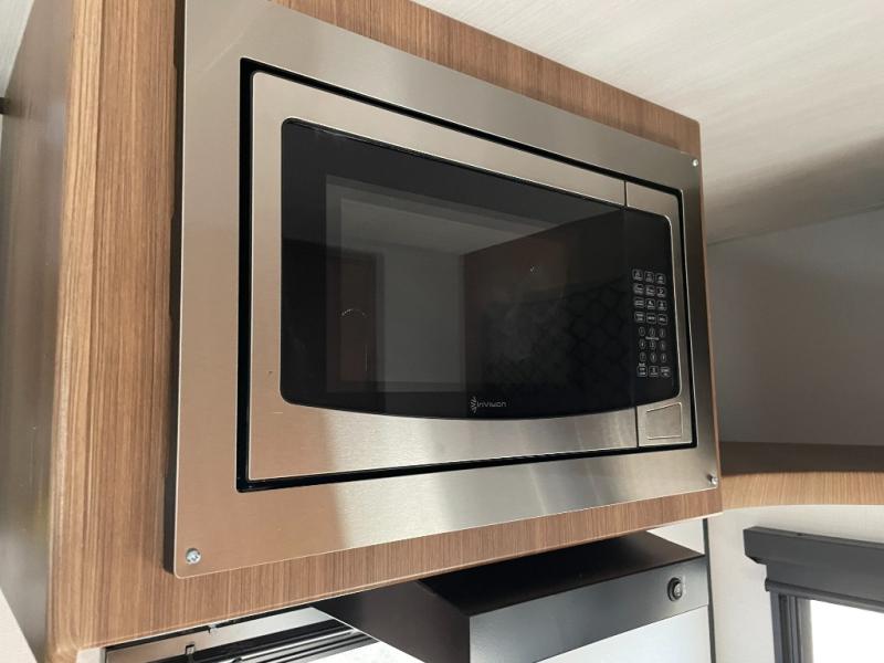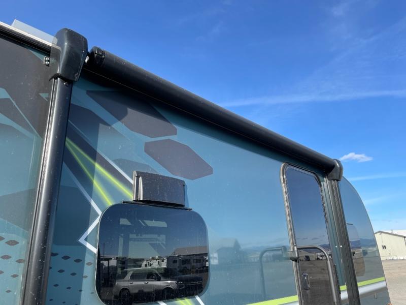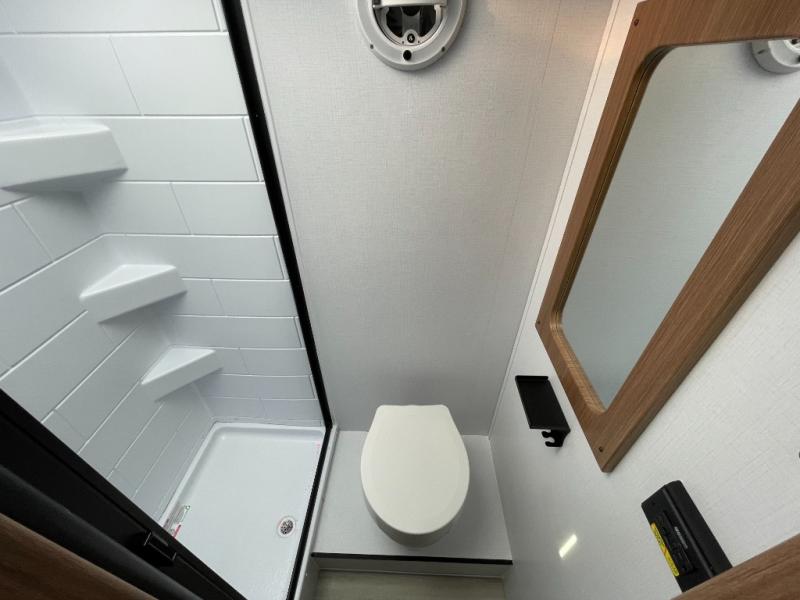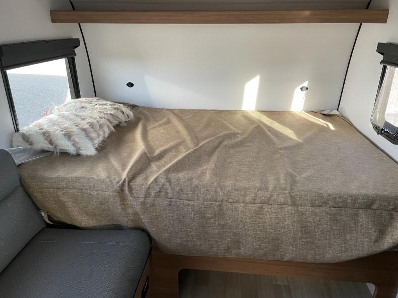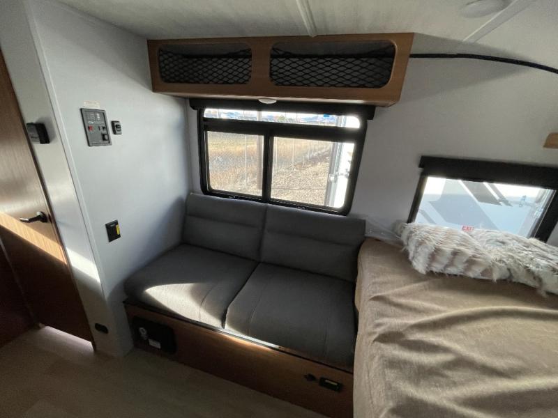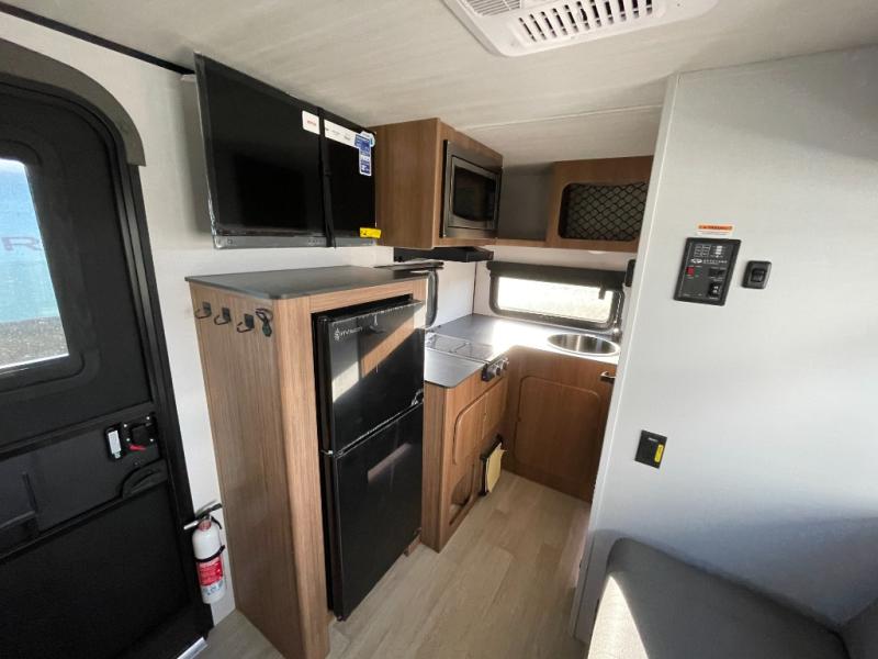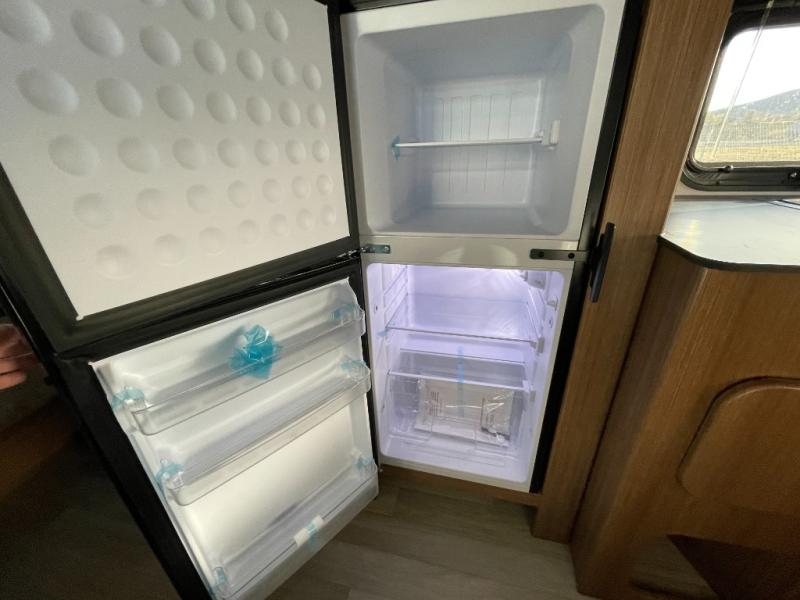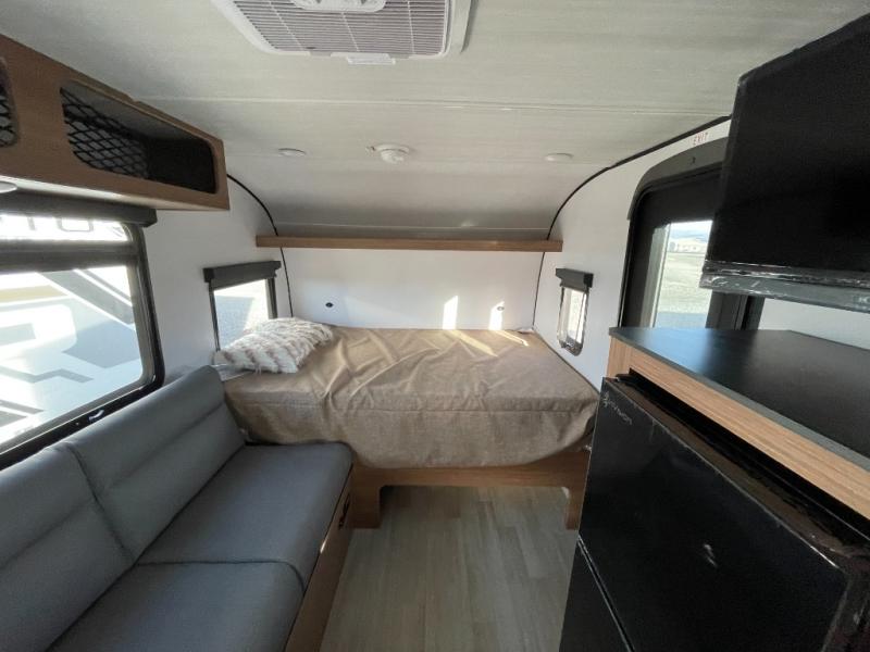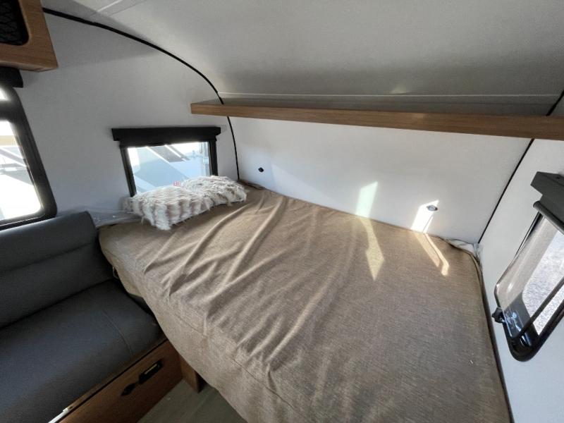 This travel trailer is ideal for weekend getaways or extended road trips! The full bathroom provides all the amenities you need, while the spacious 54" X 74" bed ensures a restful night's sleep. Moreover, overhead cabinets offer ample storage for your belongings, and the TV provides entertainment for downtime. The refrigerator keeps your favorite snacks and drinks fresh, and additional overhead cabinets offer extra storage. In addition, the 9' awning provides shade and protection from the elements, creating a comfortable outdoor living space.
