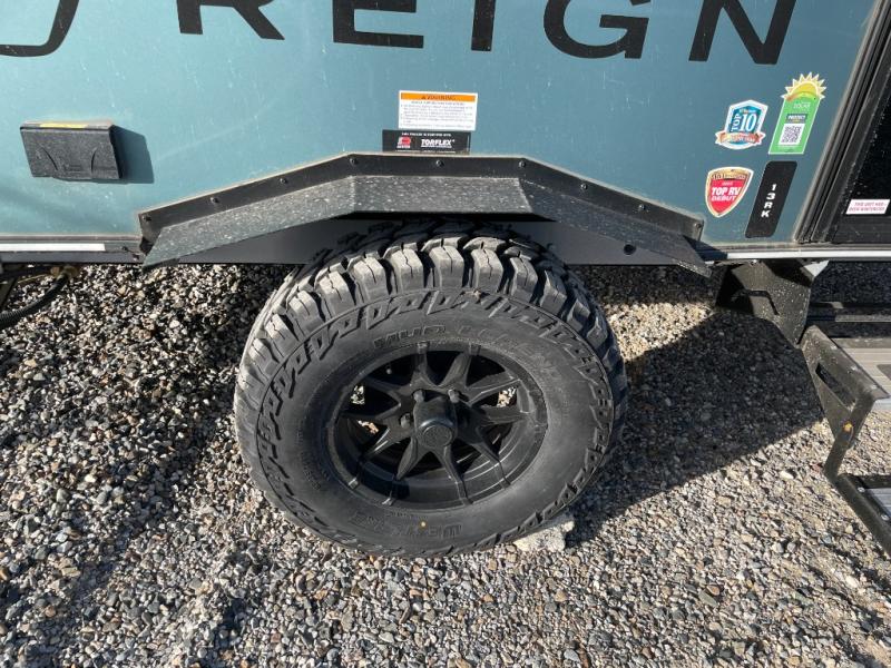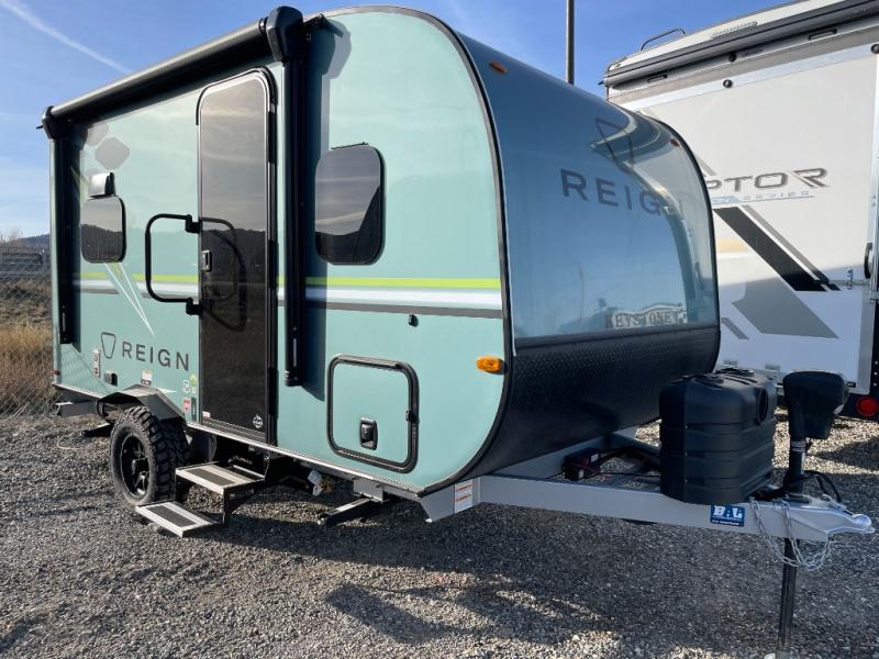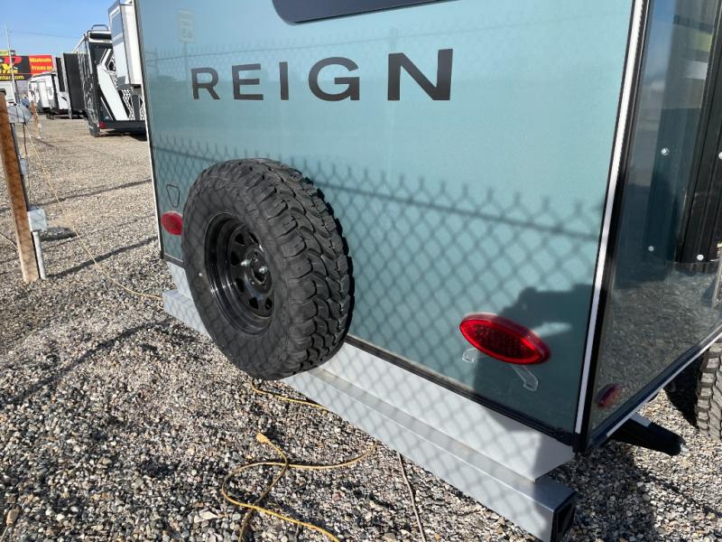 The Reign travel trailers by Keystone are premium single-axle units that are sure to make an impression at the campground. Each one is built with an exclusive automotive-finished aluminum exterior, a walkable roof, and a 100% composite floor for added durability. There are also tinted safety glass windows, quick drop stabilizer jacks, and an exterior shower with hot and cold water. The European inspired interior design is unique and cozy, and the 78" interior height will give you plenty of space to move about. You will also enjoy the ultra bright LED light strip and solid surface countertops in the kitchen, along with blackout night shades, and many more interior comforts.
