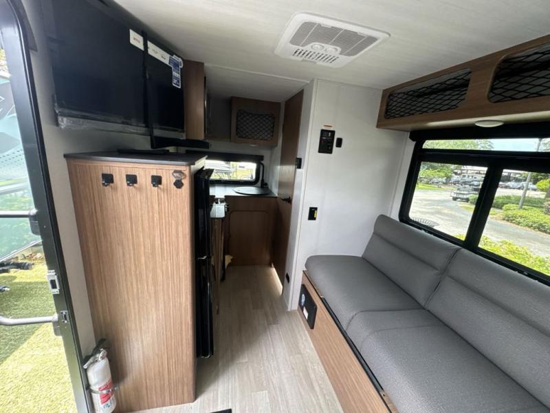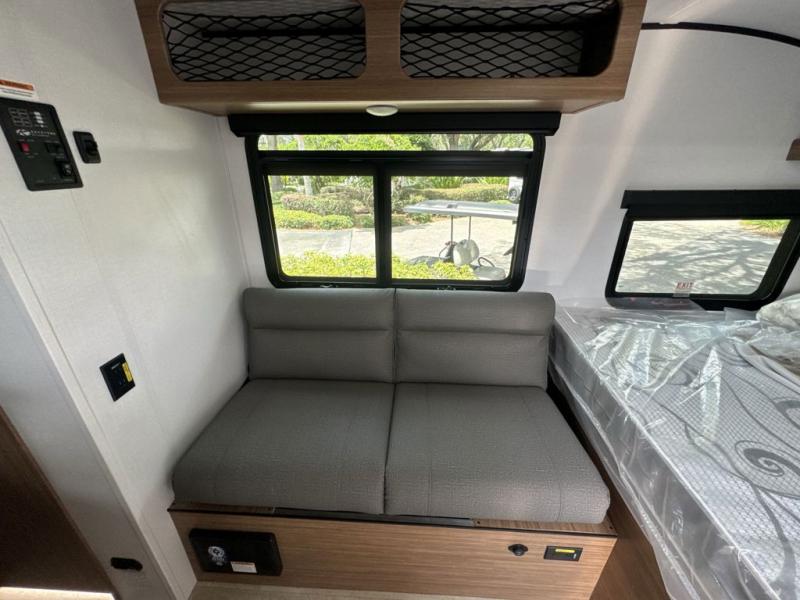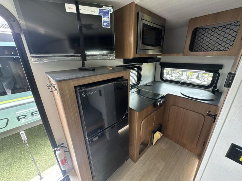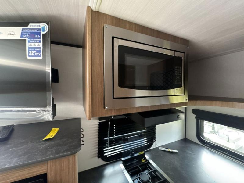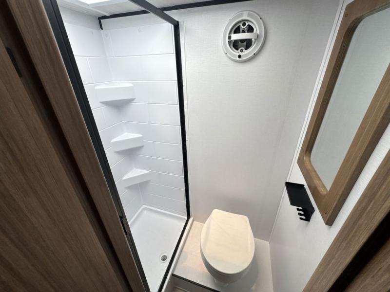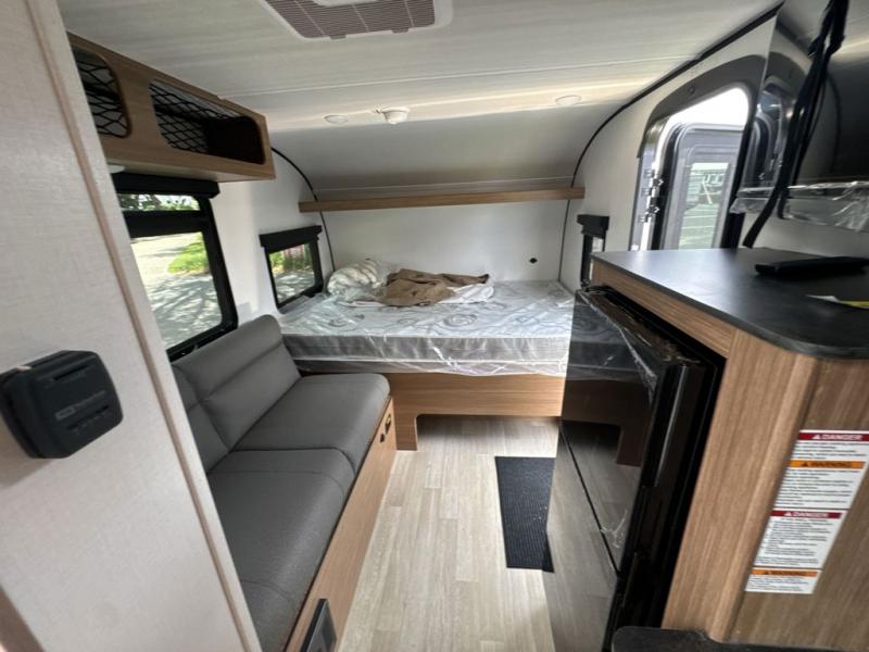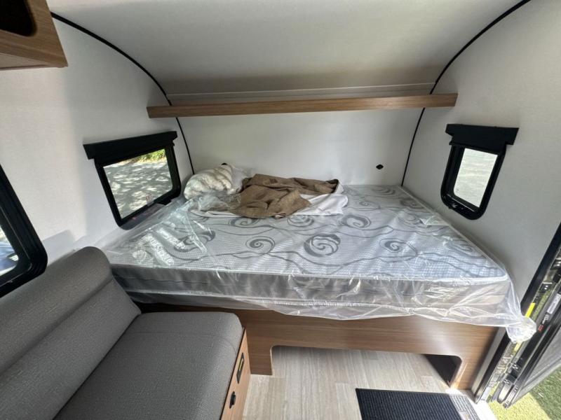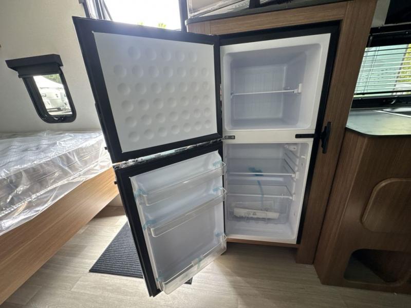 This travel trailer is ideal for weekend getaways or extended road trips! The full bathroom provides all the amenities you need, while the spacious 54" X 74" bed ensures a restful night's sleep. Moreover, overhead cabinets offer ample storage for your belongings, and the TV provides entertainment for downtime. The refrigerator keeps your favorite snacks and drinks fresh, and additional overhead cabinets offer extra storage. In addition, the 9' awning provides shade and protection from the elements, creating a comfortable outdoor living space.