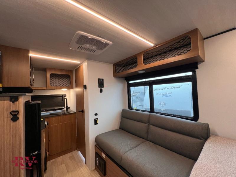 This travel trailer is ideal for weekend getaways or extended road trips! The full bathroom provides all the amenities you need, while the spacious 54" X 74" bed ensures a restful night's sleep. Moreover, overhead cabinets offer ample storage for your belongings, and the TV provides entertainment for downtime. The refrigerator keeps your favorite snacks and drinks fresh, and additional overhead cabinets offer extra storage. In addition, the 9' awning provides shade and protection from the elements, creating a comfortable outdoor living space.