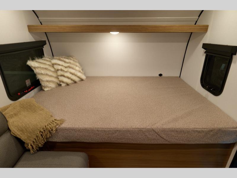 This travel trailer is ideal for weekend getaways or extended road trips! The full bathroom provides all the amenities you need, while the spacious 54" X 74" bed ensures a restful night's sleep. Moreover, overhead cabinets offer ample storage for your belongings, and the TV provides entertainment for downtime. The refrigerator keeps your favorite snacks and drinks fresh, and additional overhead cabinets offer extra storage. In addition, the 9' awning provides shade and protection from the elements, creating a comfortable outdoor living space.