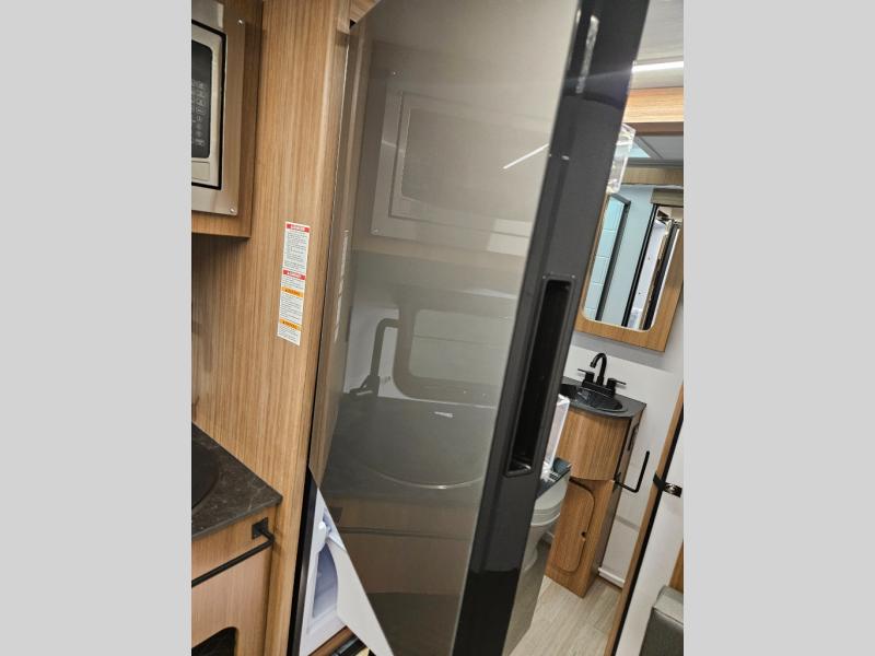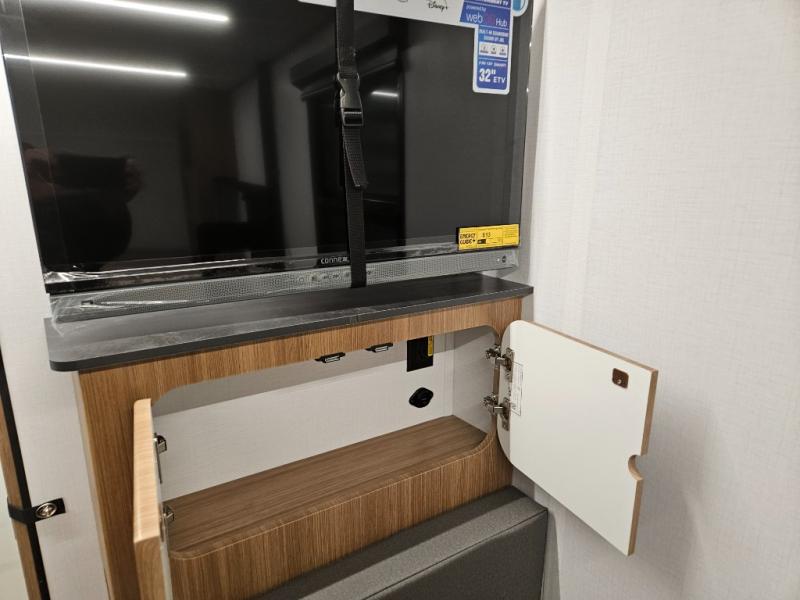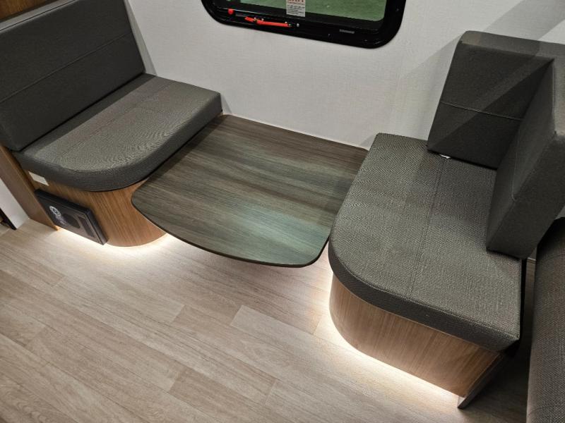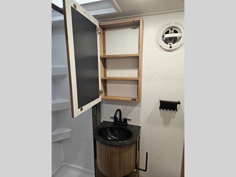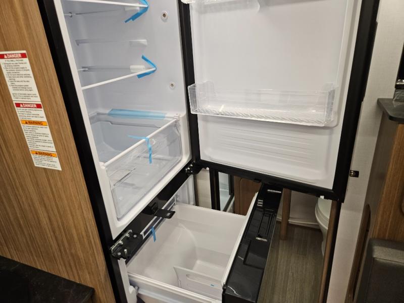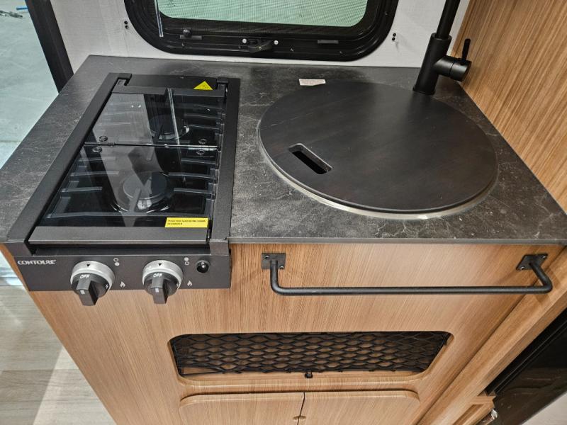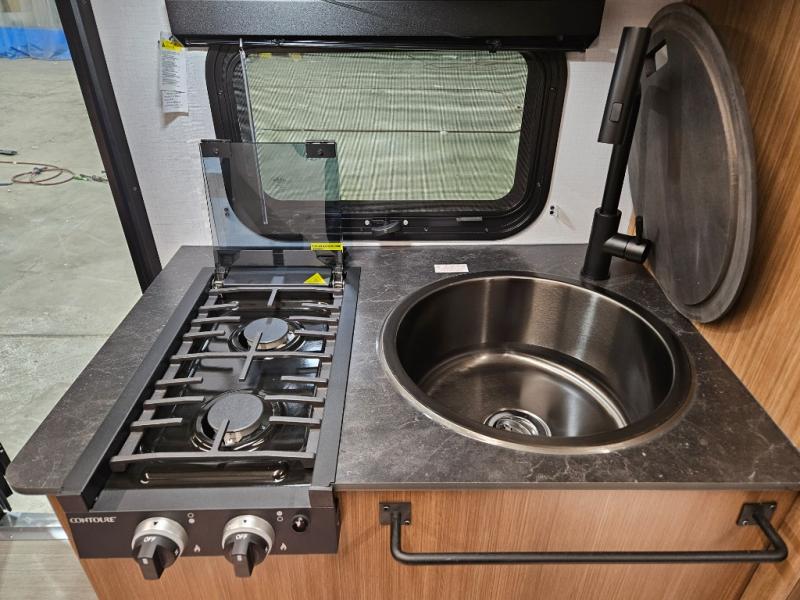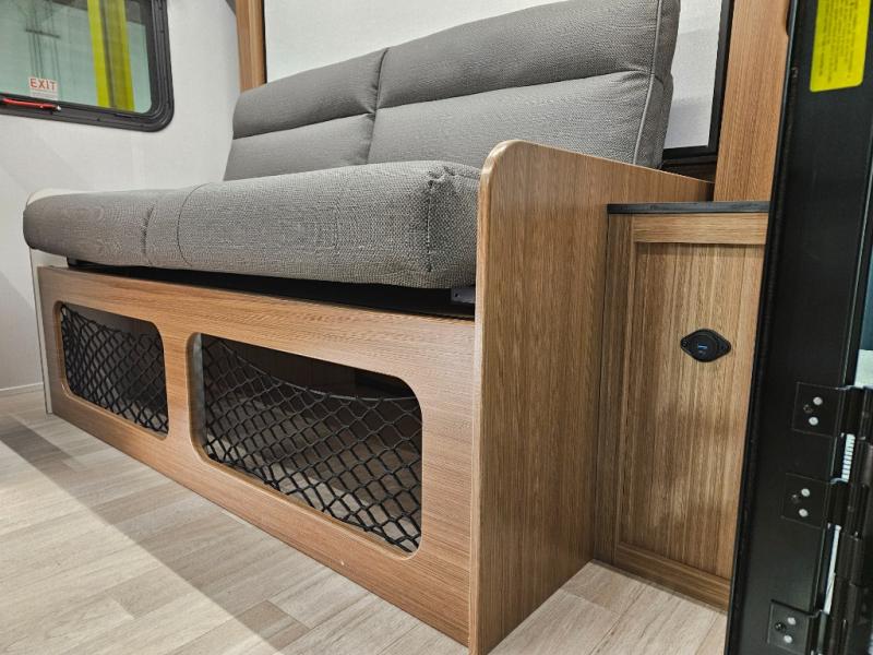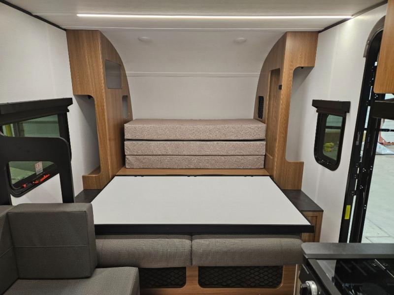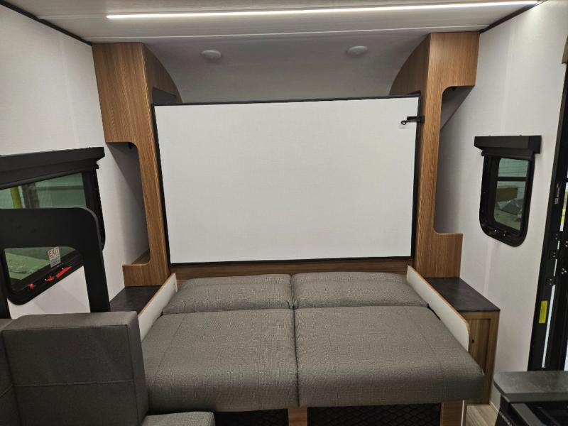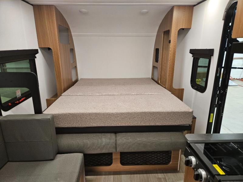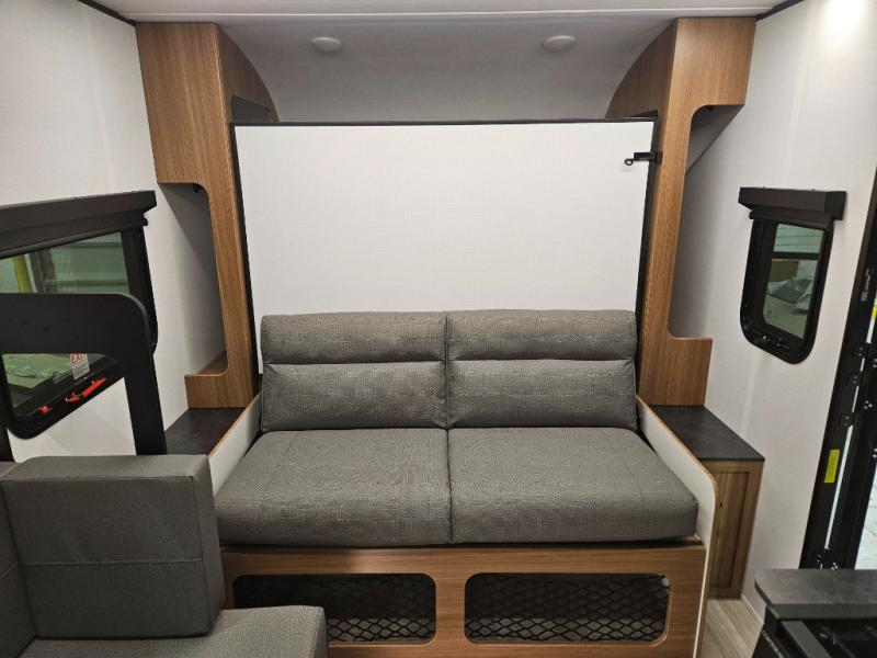 This single axle trailer is both cozy and versatile since there is a fold down sofa/Murphy bed up front! Now you can easily convert seating space into sleeping space, plus there are dual bedside closets to keep your things tidy. A two burner cooktop and air fryer/convection microwave will let you cook meals each day, and a booth dinette provides a place to dine together. You can also choose to add the optional flip-up bunk above the dinette if you need more sleeping space. And don't overlook the full rear bath that will allow you to freshen up without having to leave your camper!