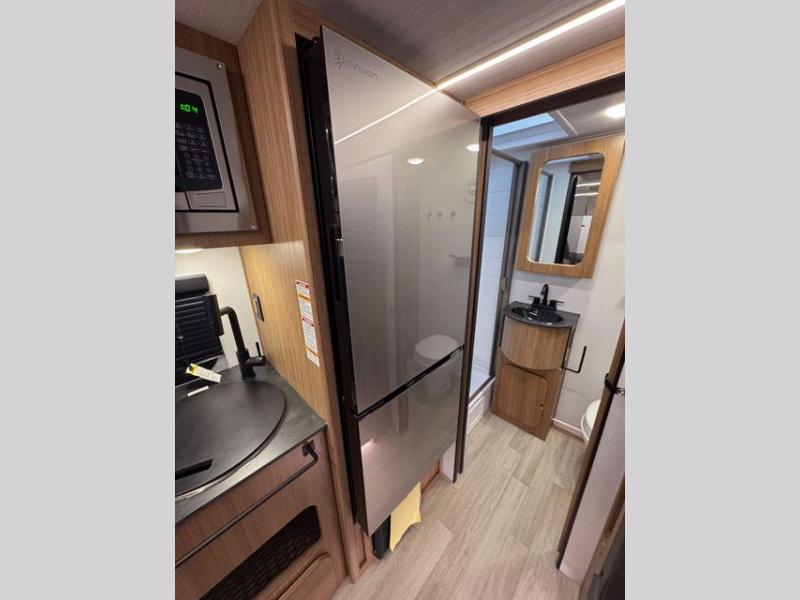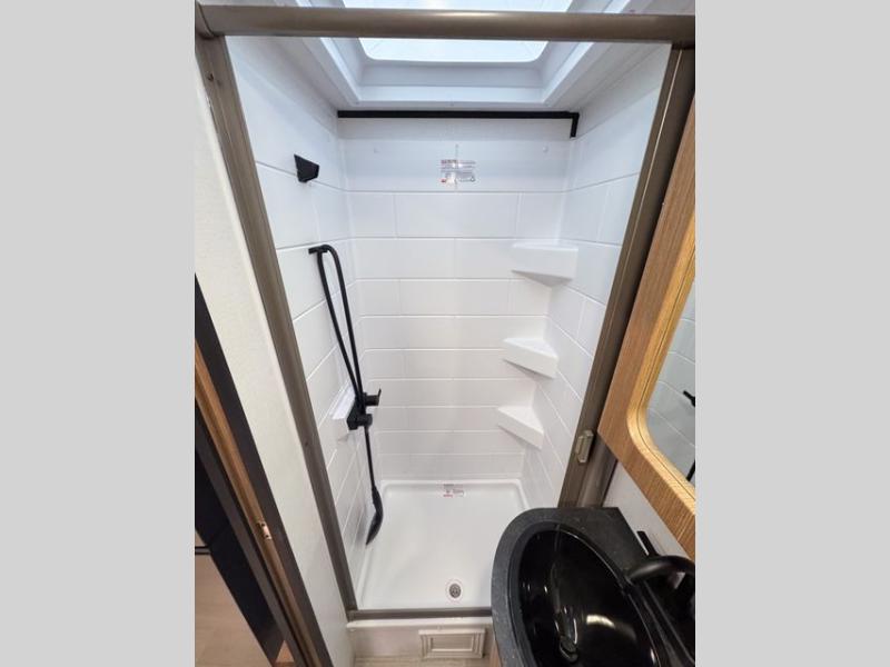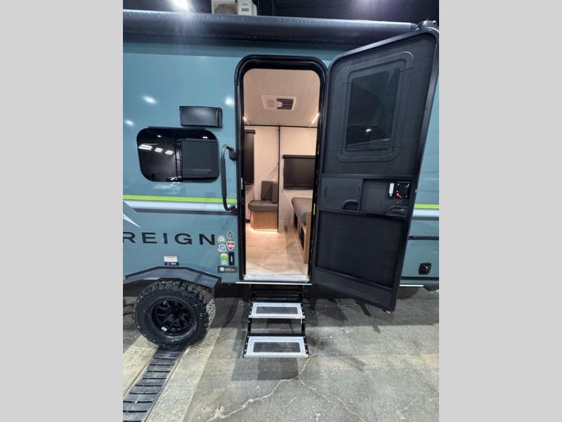 Step inside and you’ll notice the European-inspired interior design that sets the Reign apart. With 78” interior height, blackout night shades, modern finishes, and residential-style touches, this camper feels open, bright, and welcoming.