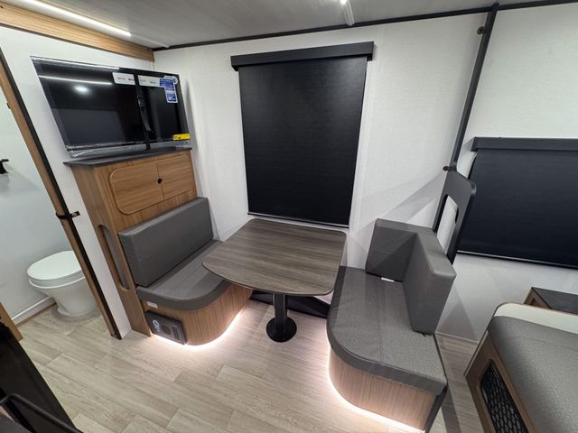 The booth dinette provides a comfortable place to enjoy meals, play games, or work remotely from the campground. Need additional sleeping space? You can choose the optional flip-up bunk above the dinette, making this a great lightweight bunk option for small families.