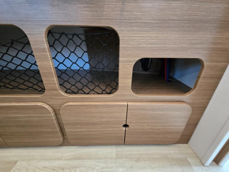 Converts from daytime seating to a nighttime sleeping space—maximizing interior functionality. Includes dual bedside wardrobes. -