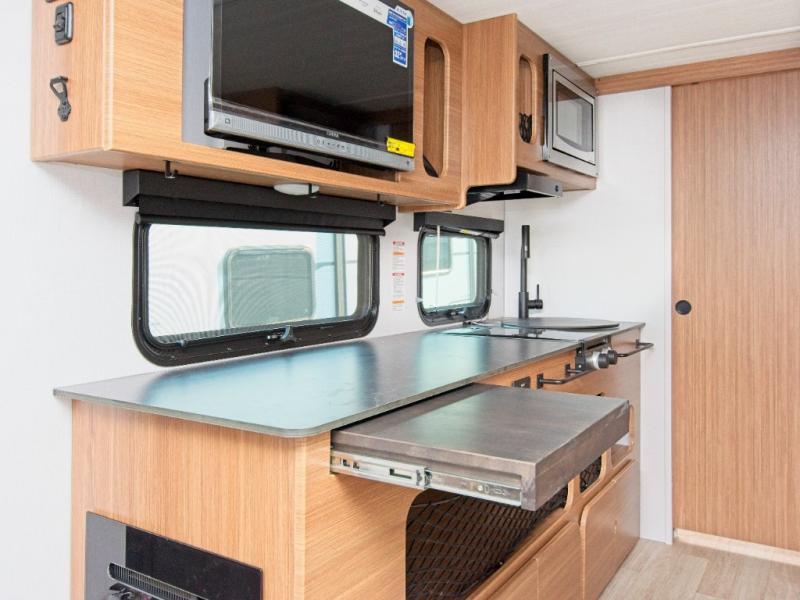 Smart Design Meets Travel Flexibility Experience ultimate versatility with the Reign 18RB’s front Murphy bed—seamlessly transitioning from a comfy sofa to a restful sleep space. You’ll also find dual bedside wardrobes to keep your essentials organized.