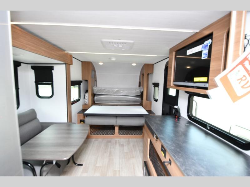 Step into the 2026 Keystone Reign 18RB, where thoughtful design and modern amenities make every trip feel effortless. This single-axle travel trailer offers a Murphy bed up front that easily converts to a cozy seating area, paired with dual bedside closets for personal storage. The theater dinette slide provides additional space to relax, while the full kitchen features a two-burner cooktop, air fryer/convection microwave, and a huge countertop with a flip-up extension, making meal prep a breeze. A fireplace adds warmth and ambiance, creating a home-like atmosphere wherever your adventures take you.