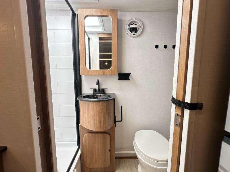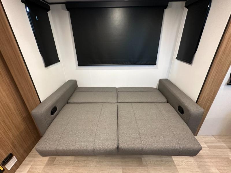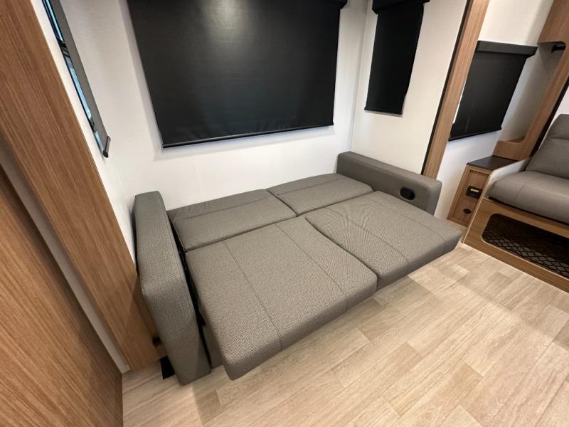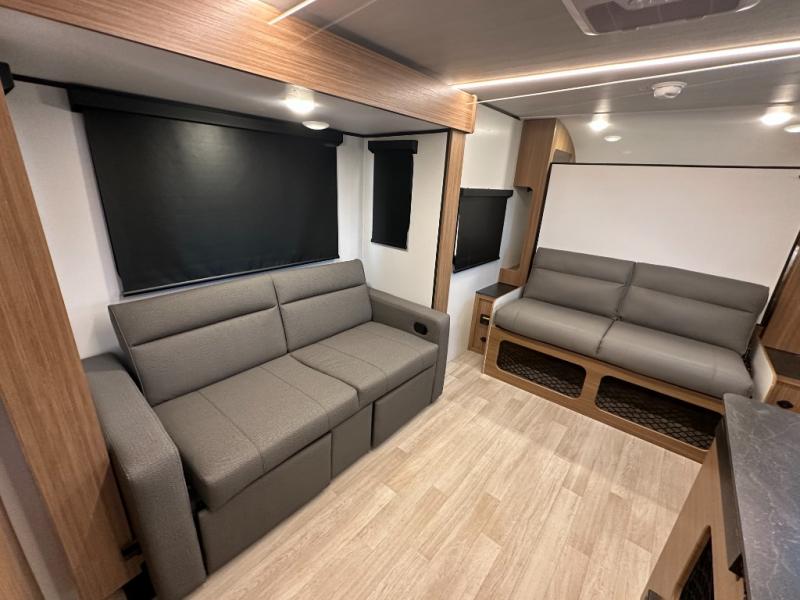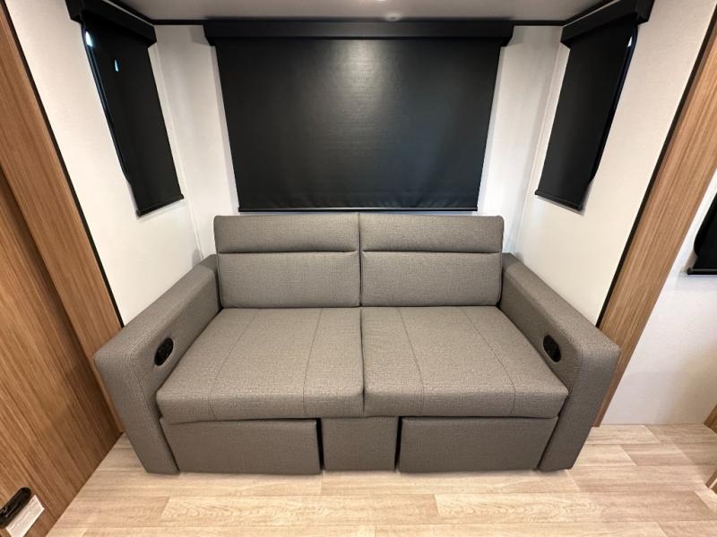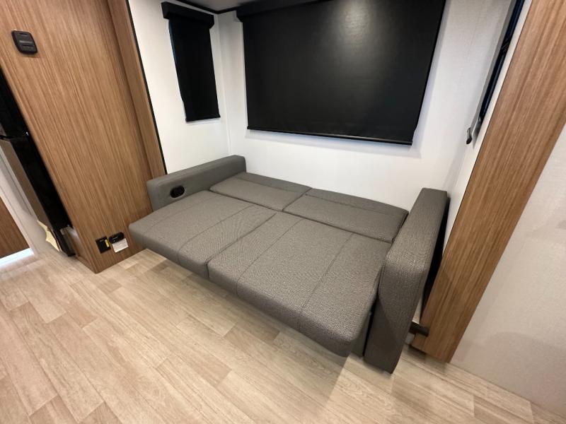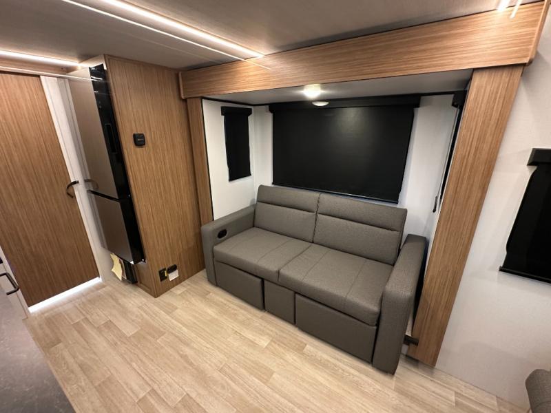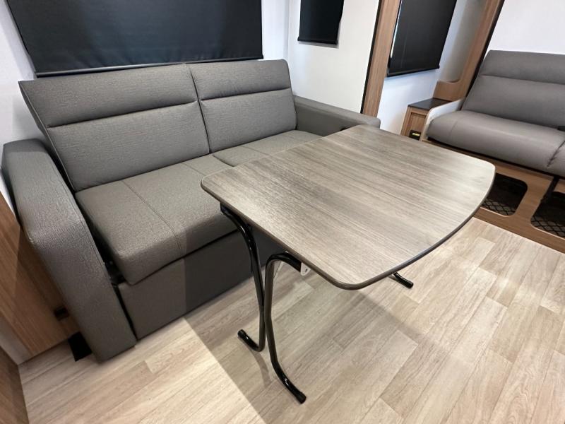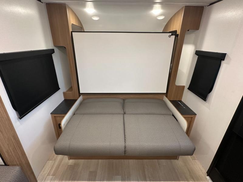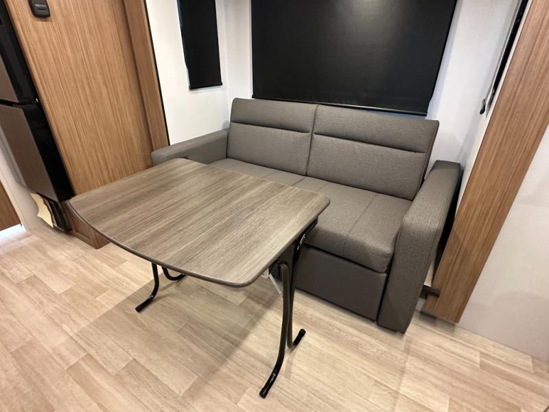 Compact yet spacious layout: Murphy bed over sofa + dinette slide offers flexibility and functional living space.