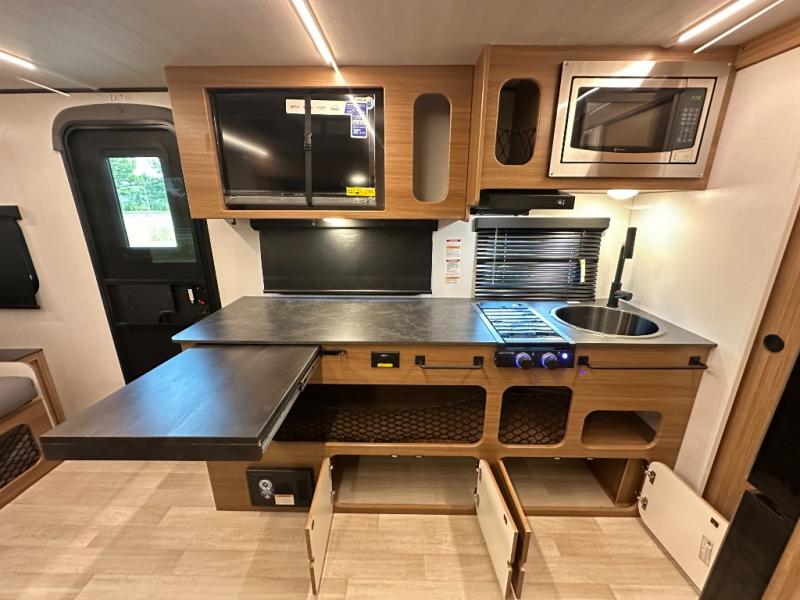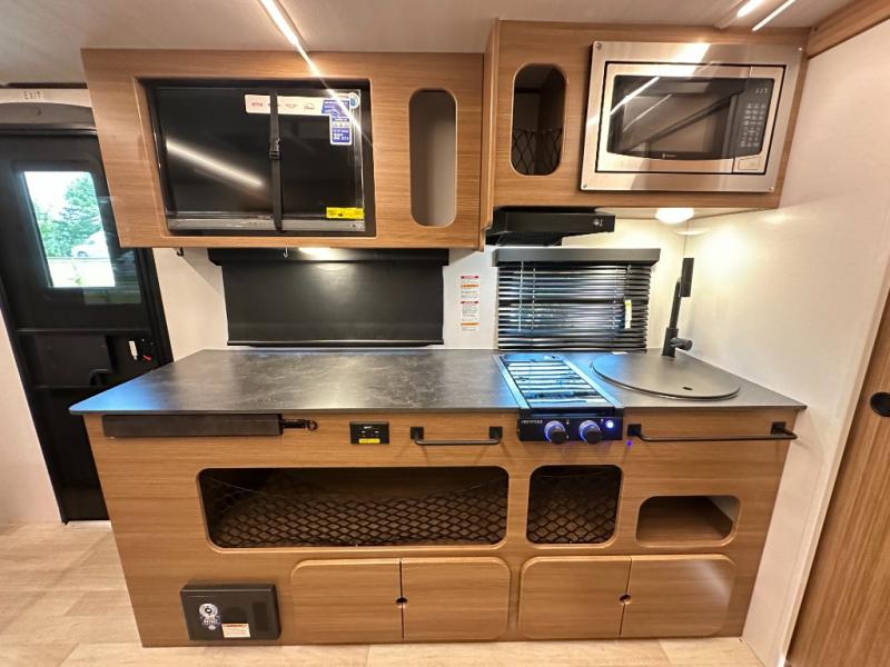 Stylish interior & exterior finish: Modern design, gloss aluminum exterior, big kitchen countertop, integrated LED strip lighting Campers Inn