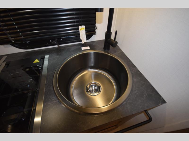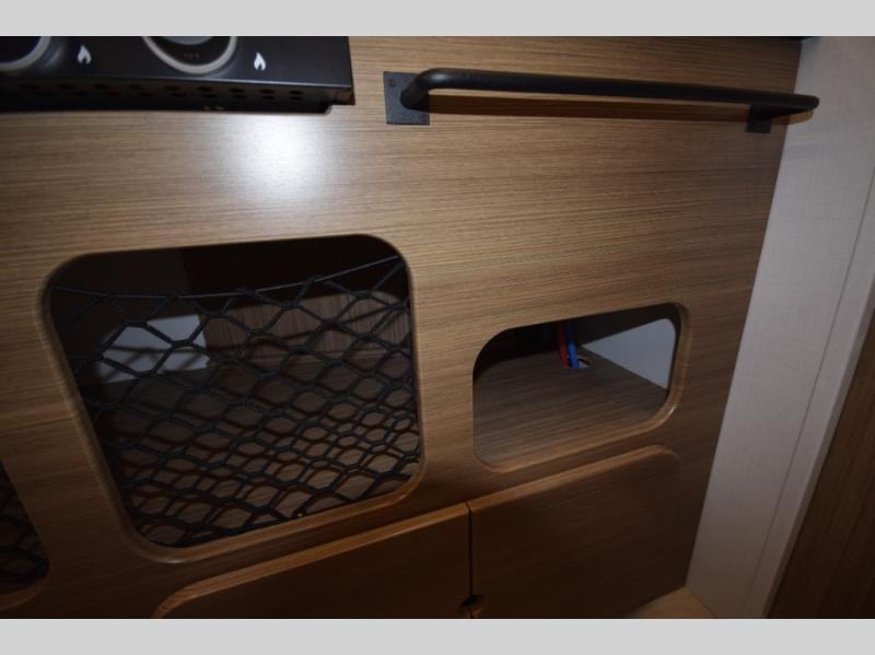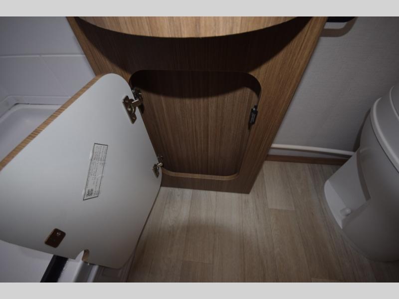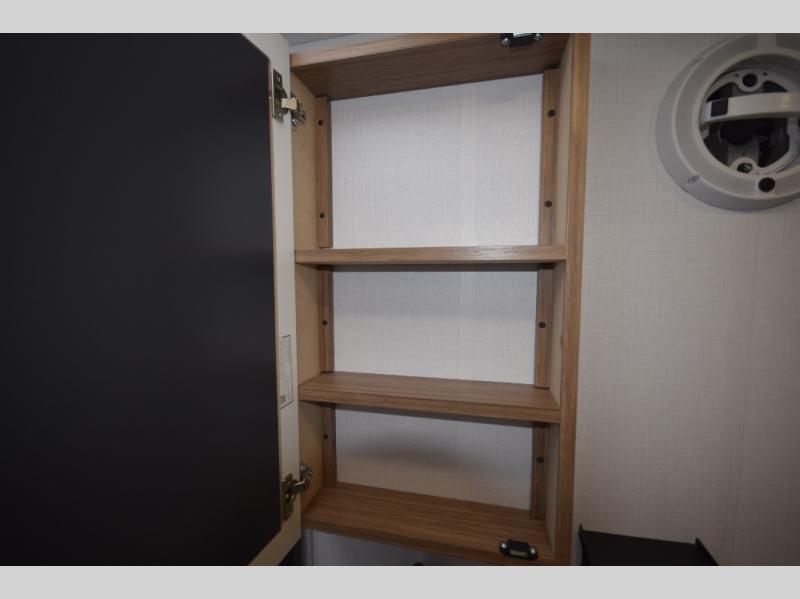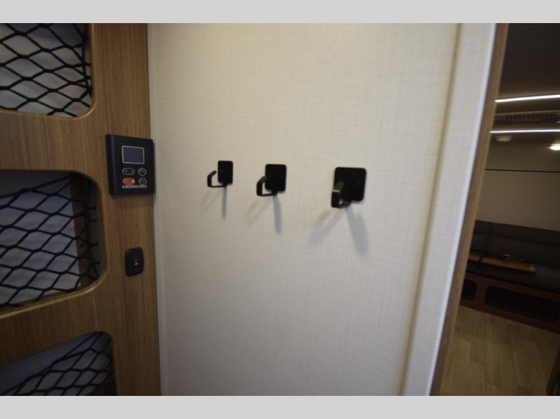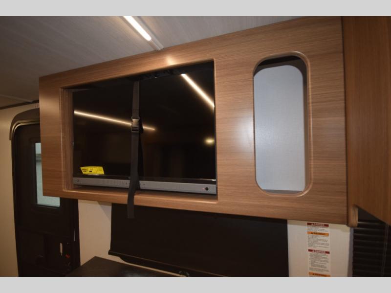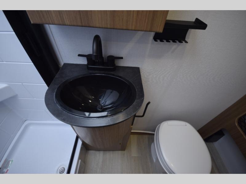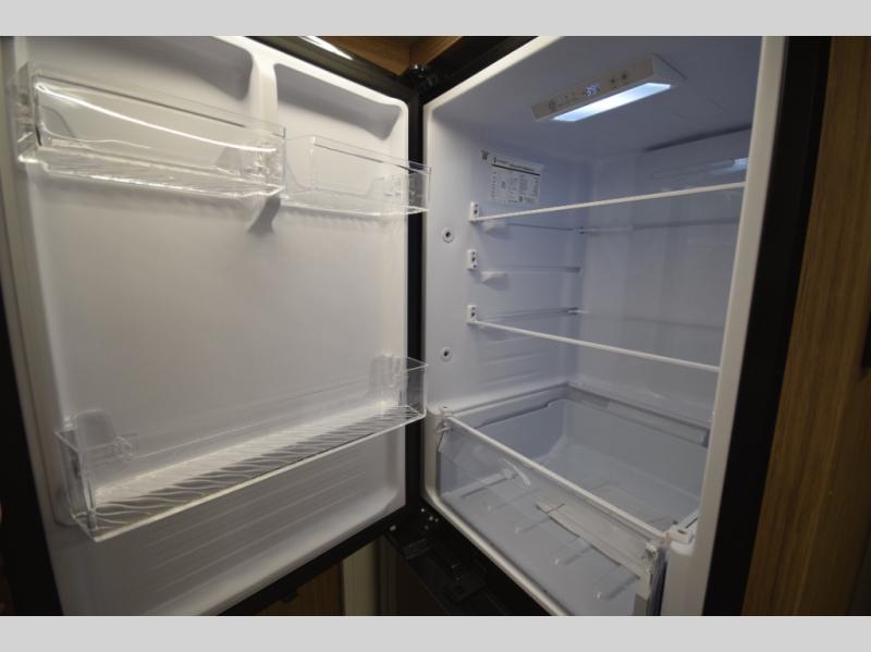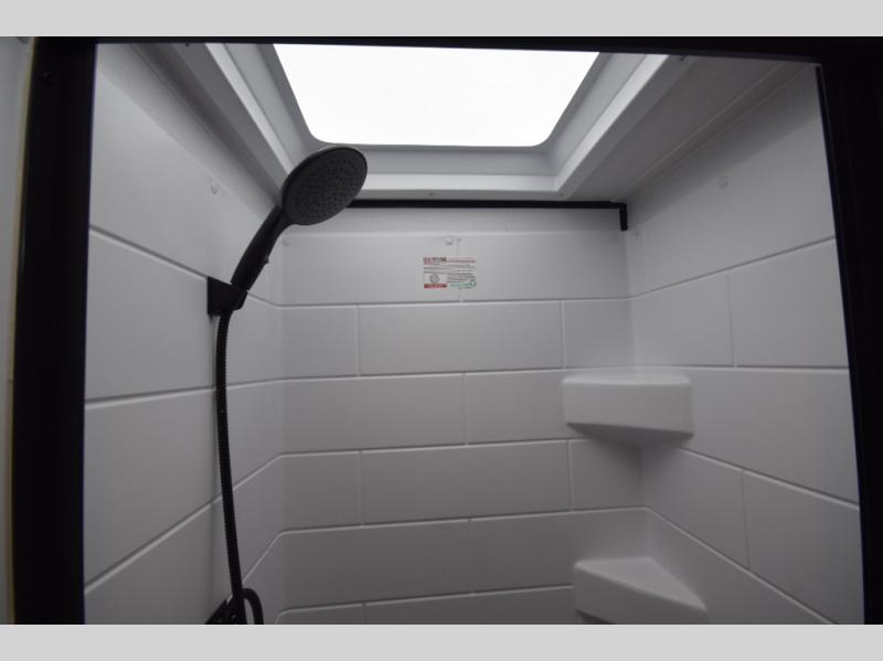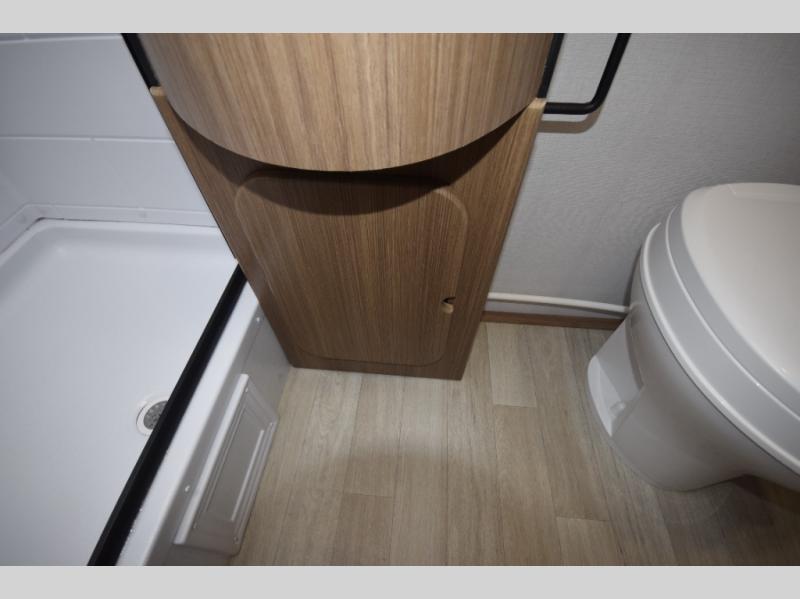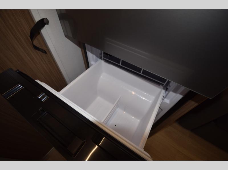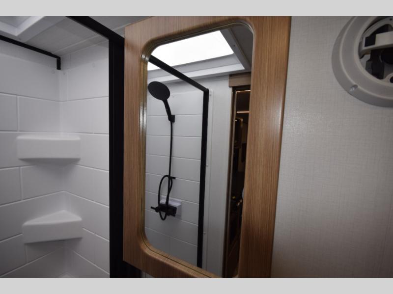 Stylish, efficient design with blackout night shades, ultra-bright LED lighting, and solid surface countertops. The 78" interior height provides a spacious, open feel.