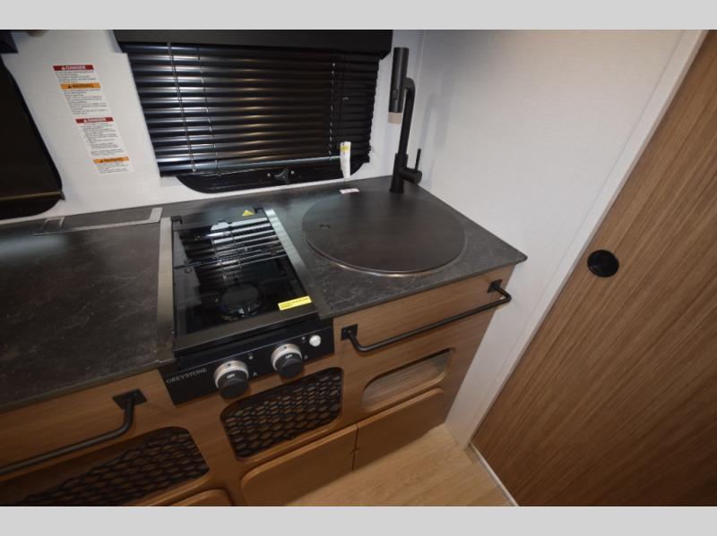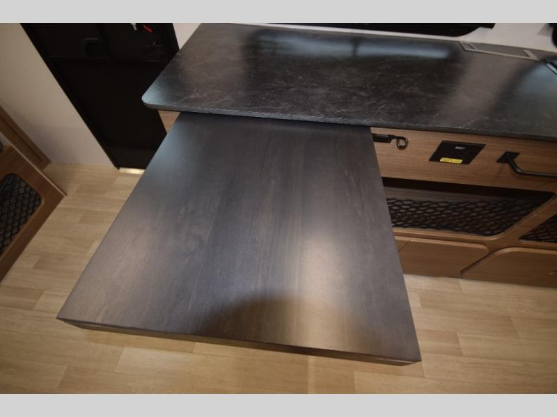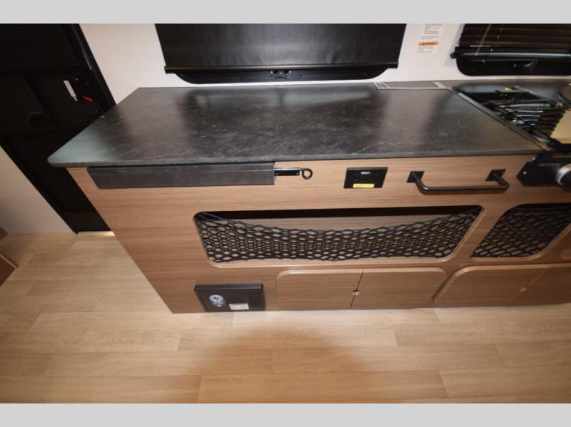 Includes a two-burner cooktop and air fryer/convection microwave for quick, delicious meals. A large countertop with a flip-up extension gives you extra space to prep and cook with ease. -