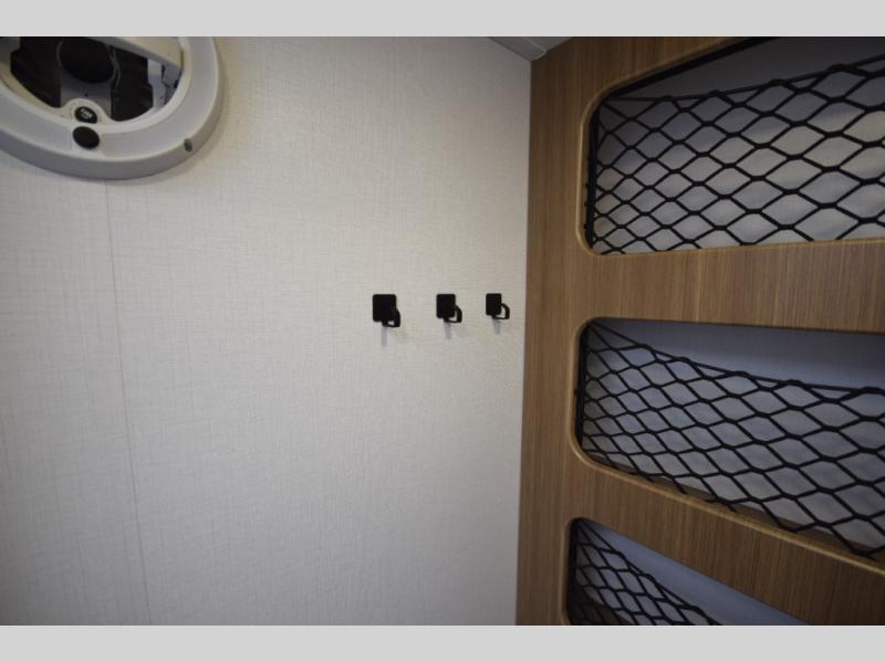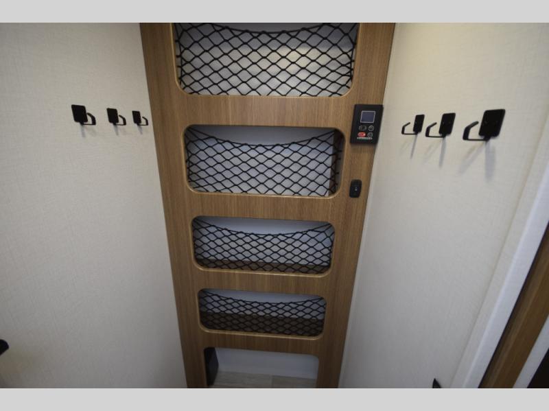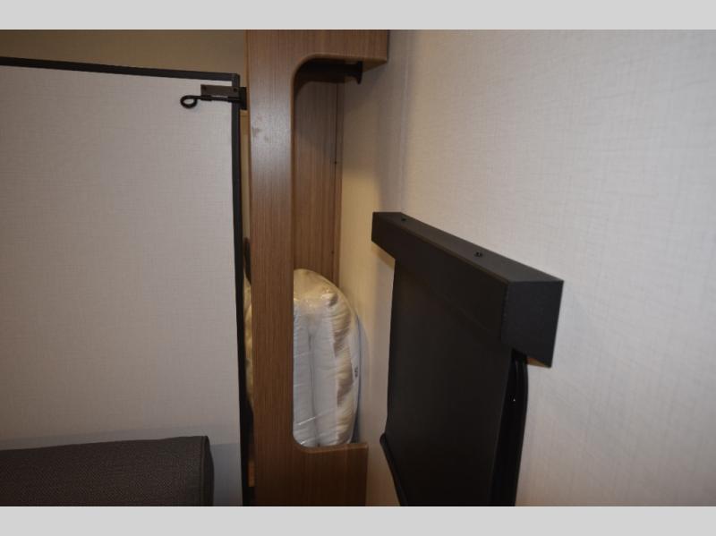 Easily convert your living space into a cozy sleeping area. Dual bedside closets help keep your clothes, gear, and personal items organized. -