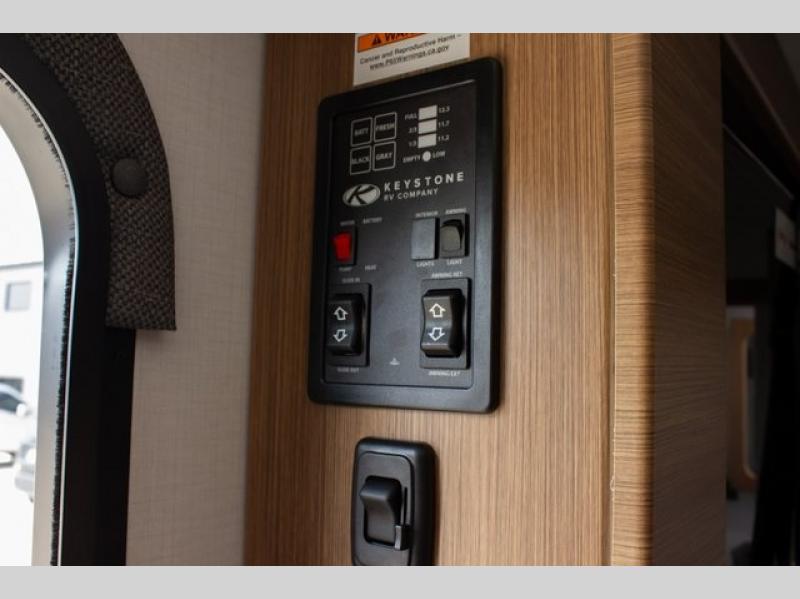 The Reign travel trailers by Keystone are premium single-axle units that are sure to make an impression at the campground. Each one is built with an exclusive automotive-finished aluminum exterior, a walkable roof, and a 100% composite floor for added durability. There are also tinted safety glass windows, quick drop stabilizer jacks, and an exterior shower with hot and cold water. The European inspired interior design is unique and cozy, and the 78" interior height will give you plenty of space to move about. You will also enjoy the ultra bright LED light strip and solid surface countertops in the kitchen, along with blackout night shades, and many more interior comforts.