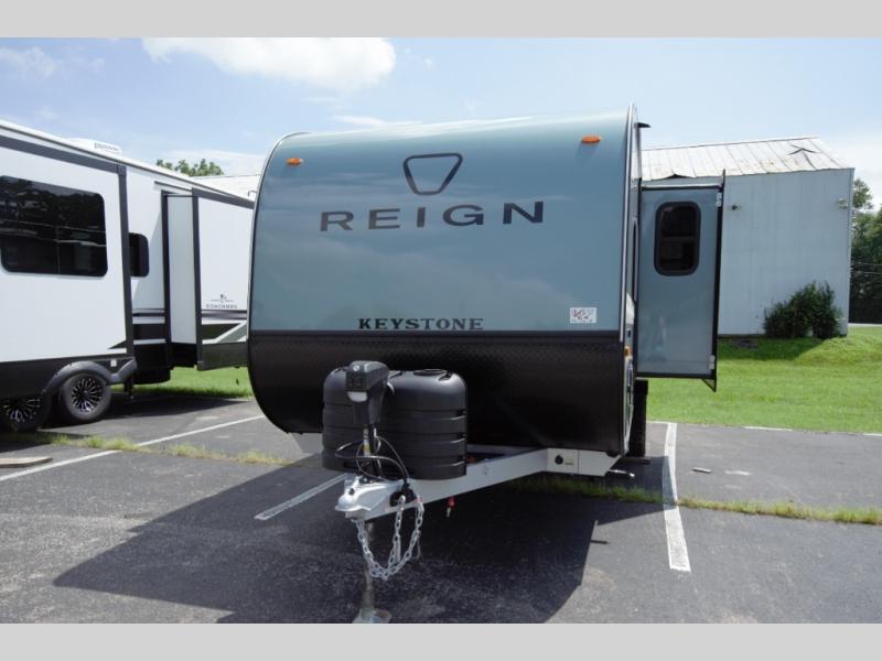 The Keystone Reign 18RB is a compact, single axle travel trailer designed for couples or solo travelers who want premium features in a smaller, easy to tow footprint. Whether you are planning weekend escapes or cross country trips, the Reign 18RB delivers comfort, functionality, and modern style in every mile.