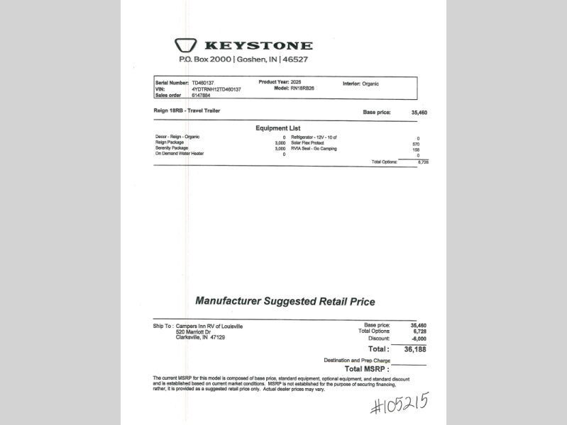 Call us today at 812 282 7718 or stop by Campers Inn RV of Louisville to tour the Keystone Reign 18RB in person