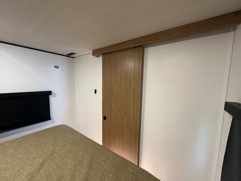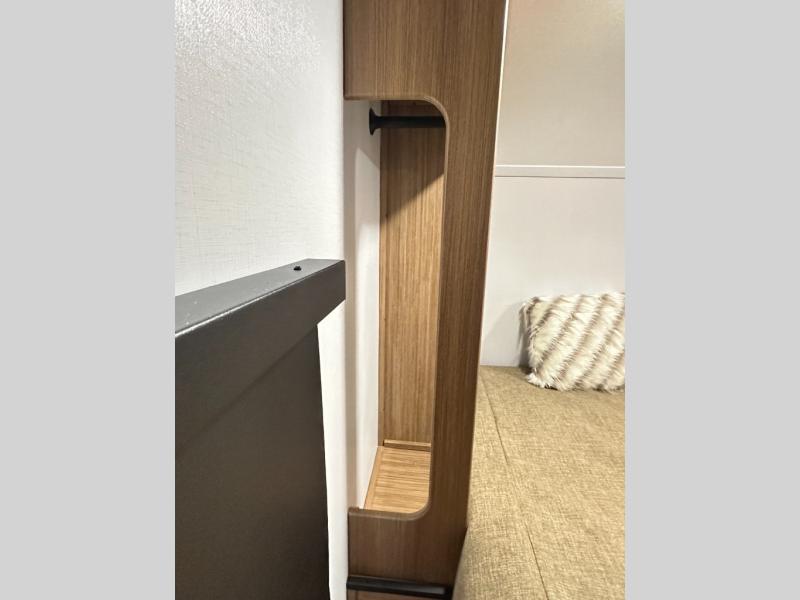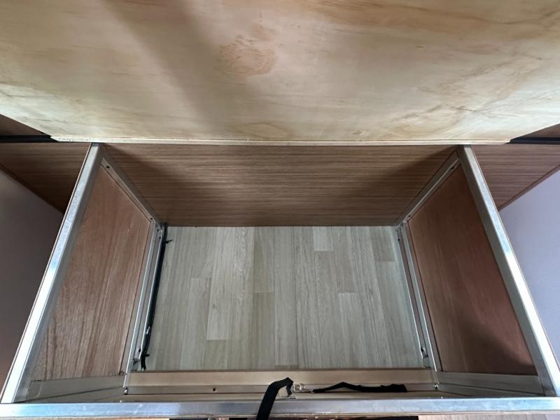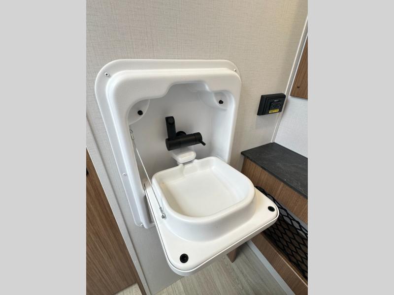 Interior Finish / Comforts: Solid surface countertops, stainless sink, flush-mount cooktop (2 burners), dedicated trash can storage, modern décor choices.