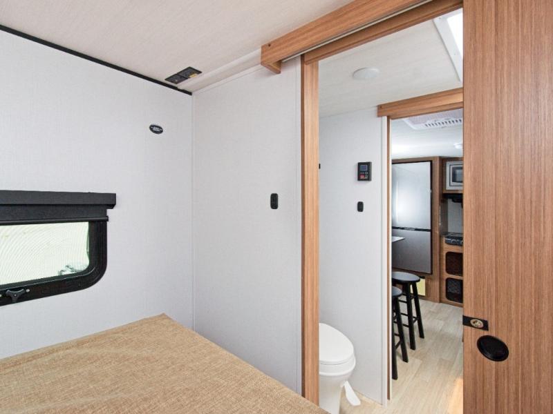 Experience the perfect blend of comfort and convenience with the Keystone Reign 19RK, featuring a stylish rear kitchen and a spacious walk-through bathroom designed for effortless travel living.