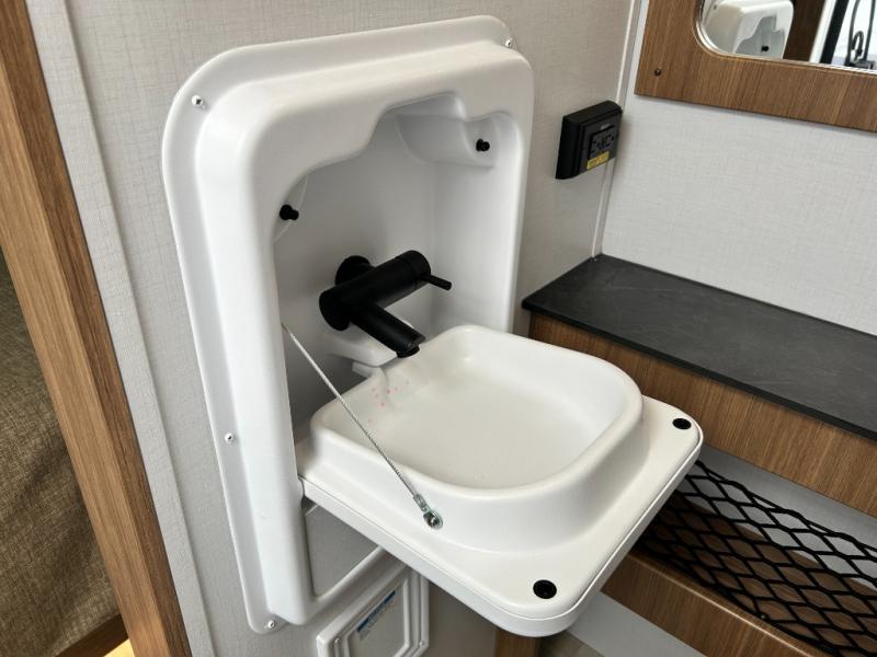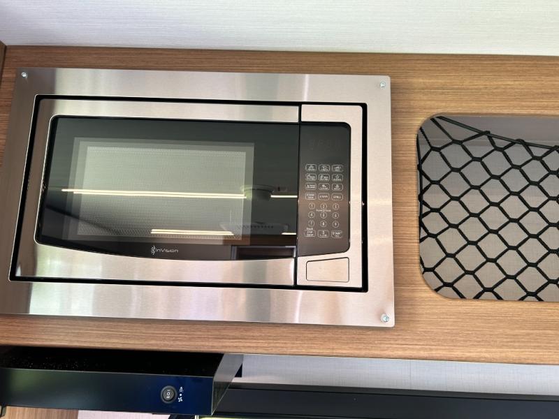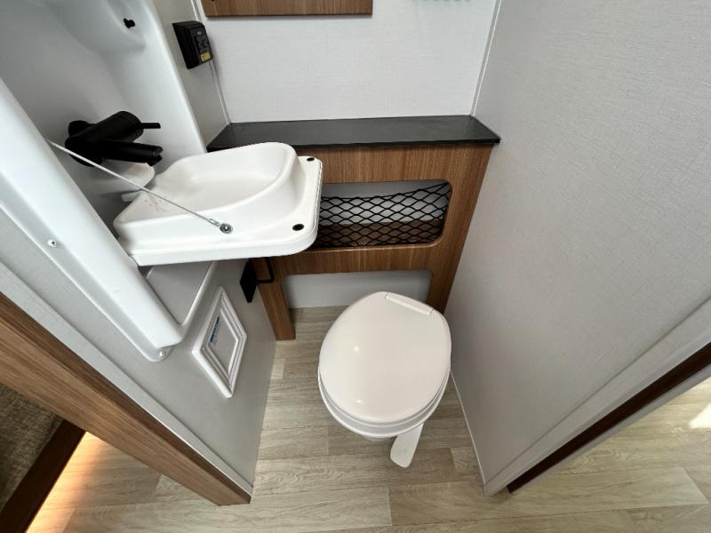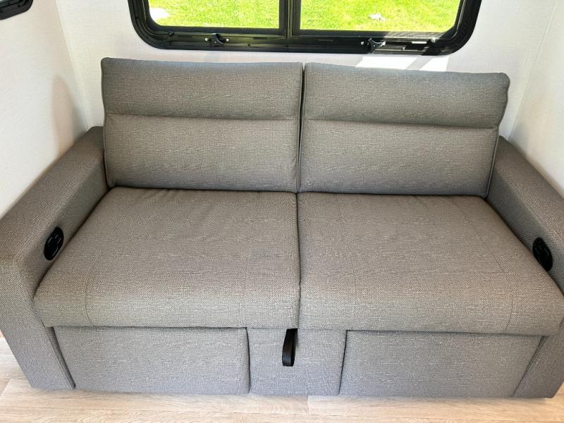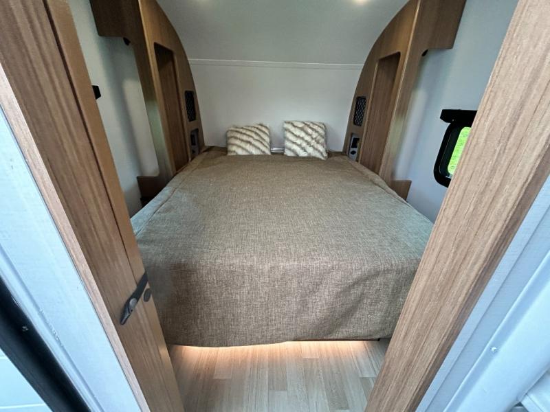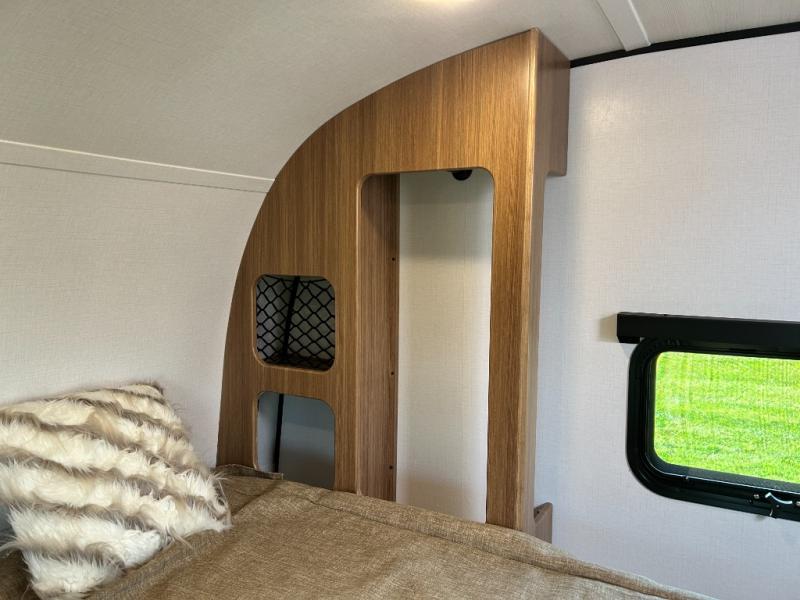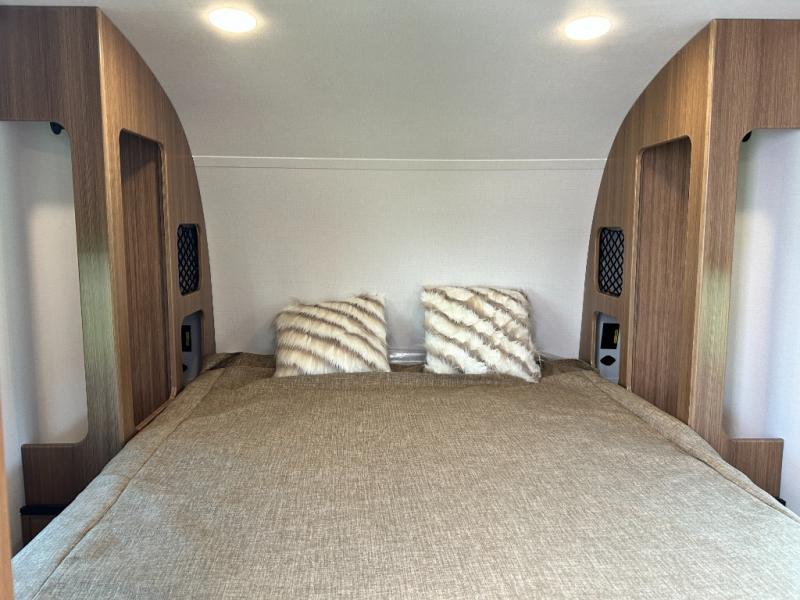 Spacious Front Sleeping Area — Full or queen bed depending on configuration with overhead storage