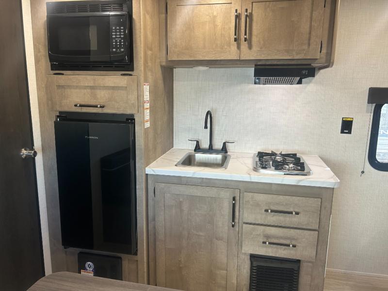With any Springdale Mini travel trailer by Keystone, you will enjoy lightweight towing thanks to their single axle! The XL tinted safety glass windows are ultra durable, and the power awning will provide protection from the sun as you relax in your camp chairs outside. Each model includes blackout night shades, LED lighting, plus many more interior comforts. There is also a 20K BTU furnace to keep you comfortable, plus a tankless water heater for endless hot showers!