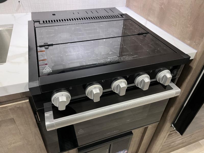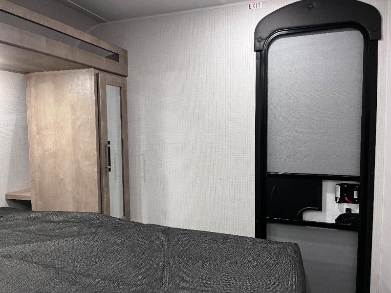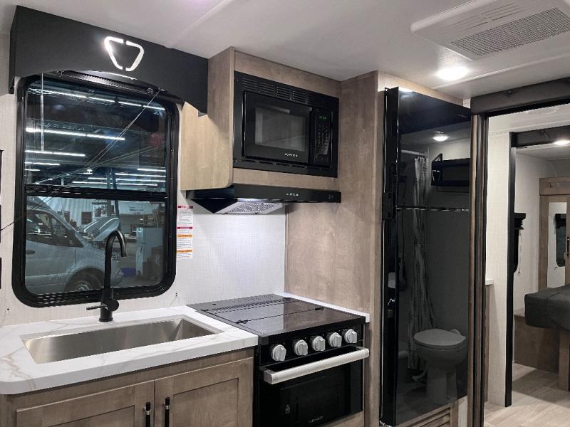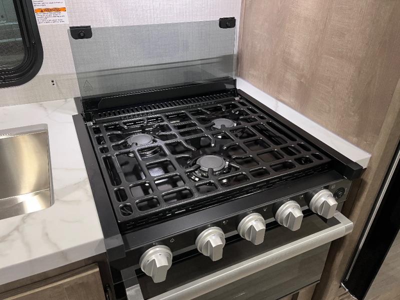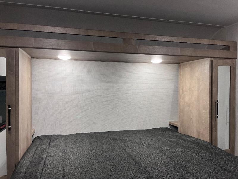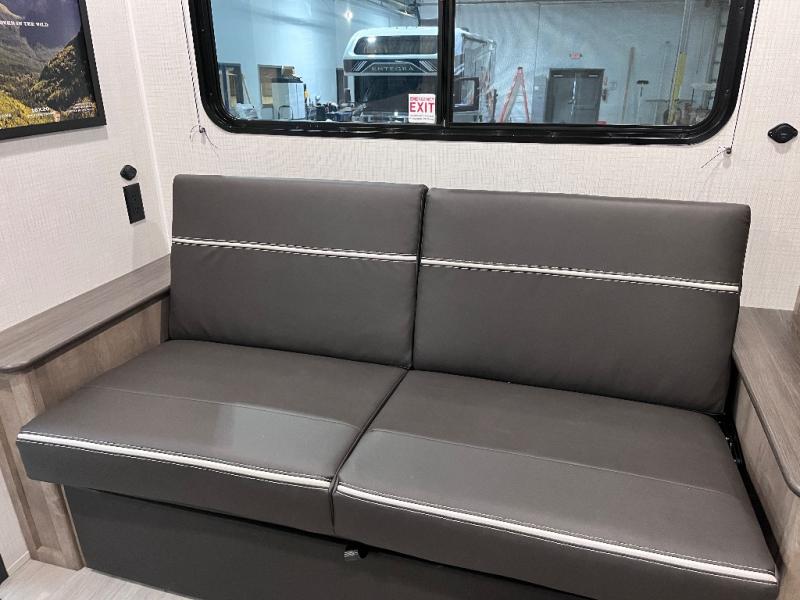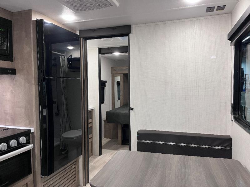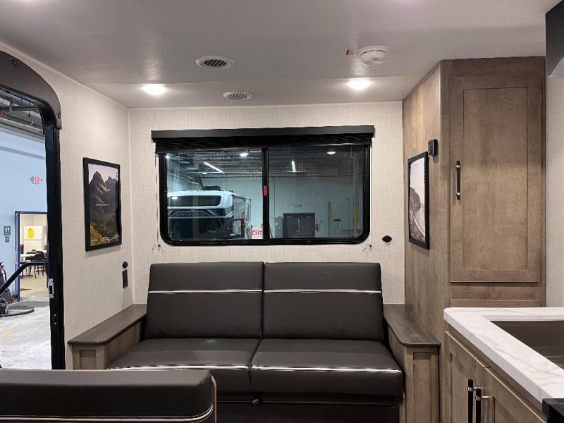 Comfort comes easy in this dual entry travel trailer! You can enter in through the front master bedroom with an Olympic RV queen bed or the rear living area with a sofa. There are also two end tables on either side of the sofa plus a spacious pantry for snacks and dry goods. A three-burner cooktop and air fryer microwave will let you make meals each day, and a booth dinette provides a place to dine together. And don't overlook the walk-through bath that is easily accessible from the bedroom or kitchen!
