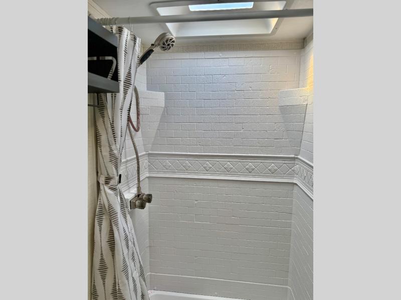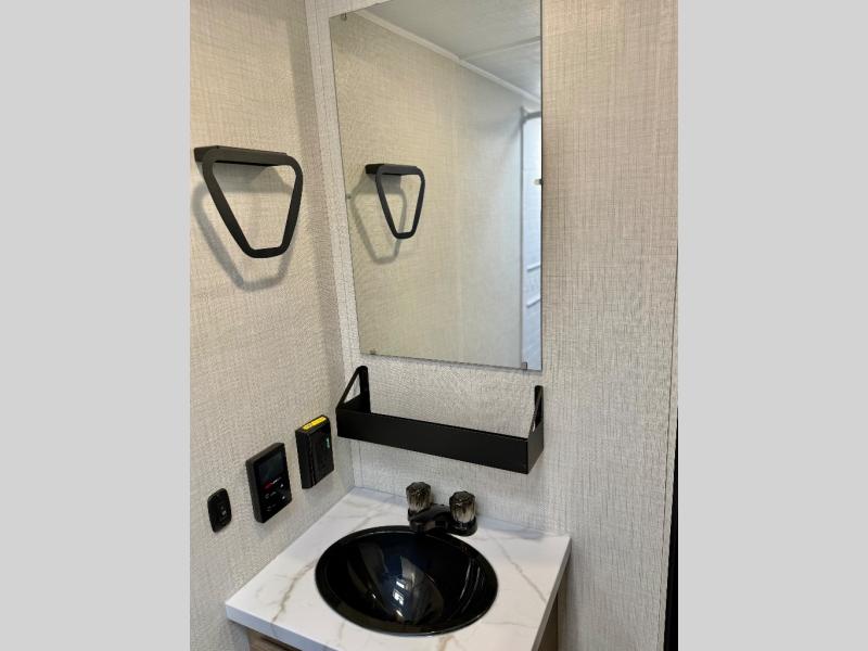 This cute Springdale Mini bunk model will easily sleep seven with the double-size bunks, booth dinette, and queen Murphy bed which features a fold-down sofa at the end. During the daytime, you can have the seating you need and want, and at night the sofa folds to become part of the front bed. The rear corner bath is convenient and features a tub, toilet, and sink. The kitchen is fully equipped to allow you to cook as you travel, and you can enjoy meals while under the 15' power awning.