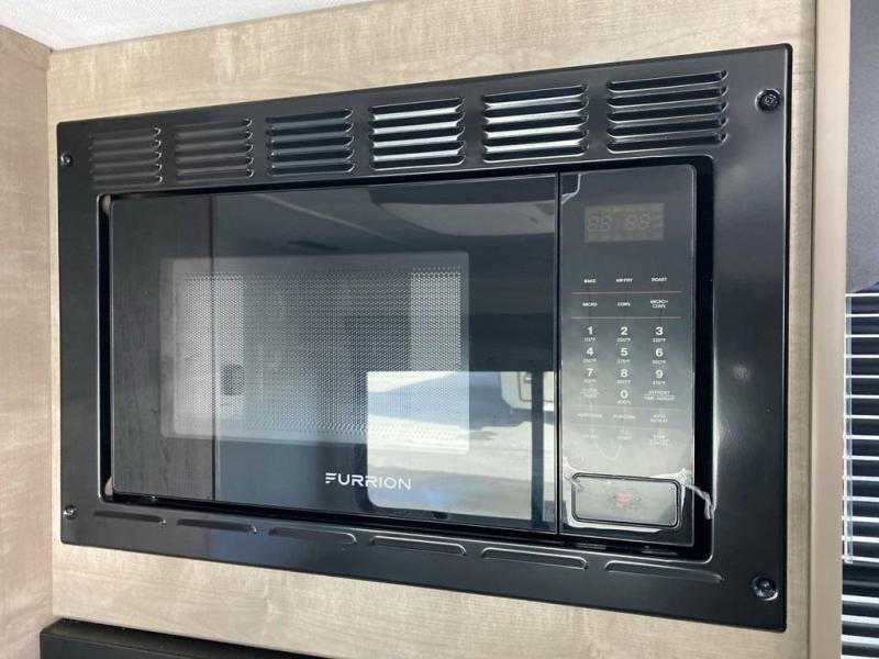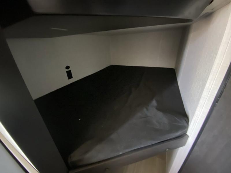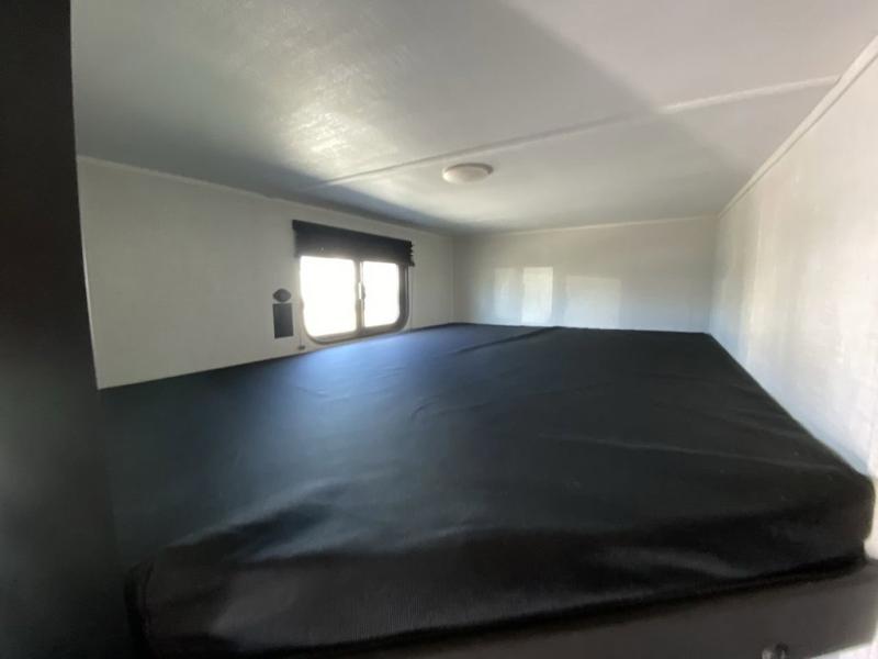 Plan fun trips at the campground in this travel trailer with double-size bunks for your guests or little ones, plus a front bedroom with a walk-around Olympic RV queen bed! The dual bedside wardrobes and overhead shelf will keep your personal belongings organized, and the exterior pass-through will be perfect for fishing poles and camp gear. A full kitchen includes a three-burner cooktop and an air fryer microwave to cook your best meals, and a booth dinette provides a place to dine at. There is also a sofa with an end table where you can enjoy your morning coffee at.