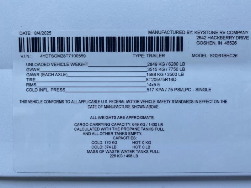 New 2026 Keystone RV Springdale 261BHC Travel Trailer