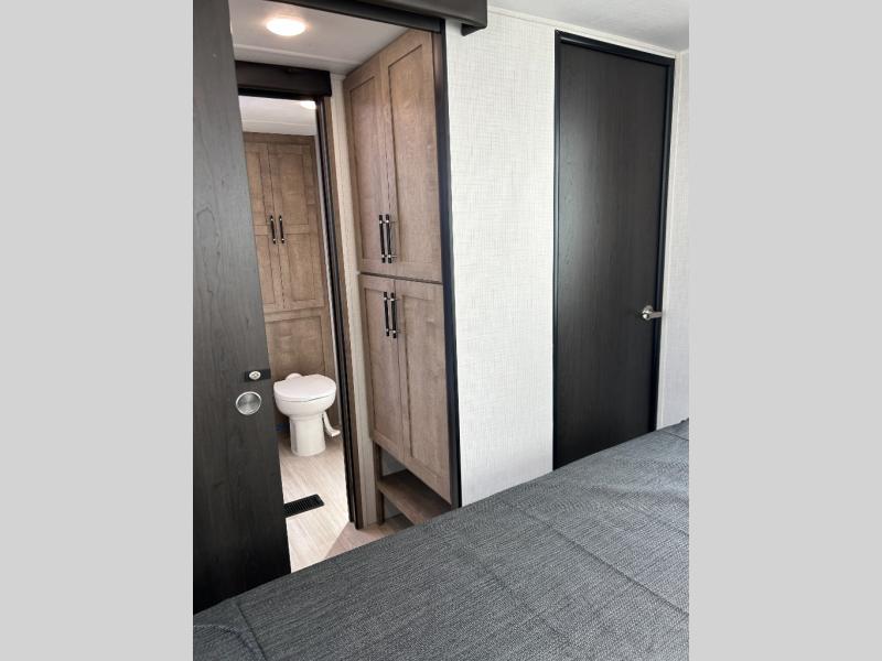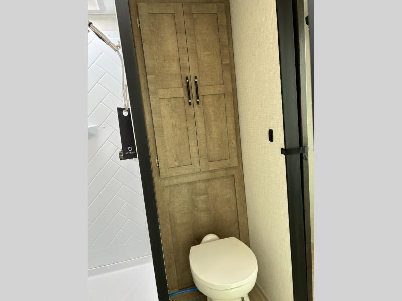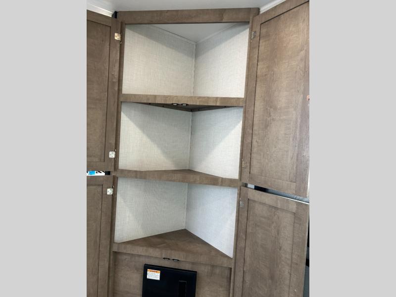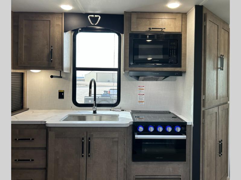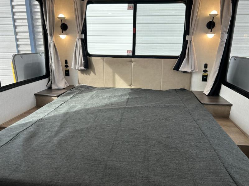 This travel trailer is designed for campers who want extra comfort without giving up easy towing and it offers a smart, functional layout for everyday living on the road. Along with a complete bath with a 30" x 36" shower and linen storage, you get inviting seating, a well-equipped kitchen, and plenty of storage so you can settle in and feel at home on every trip. This floorplan stands out with its 65" TV perfectly positioned for movie nights, plus dedicated wardrobe and shoe storage to keep clutter under control. At the end of the day, you can stretch out on the Olympic queen bed, giving you more sleeping space than a standard queen, and the kitchen’s air fryer microwave lets you whip up quick, crispy meals without needing extra appliances.