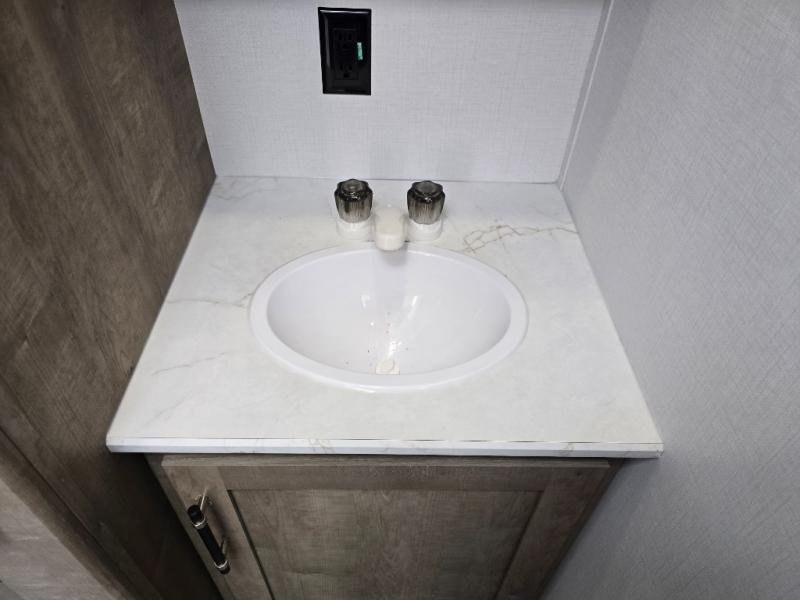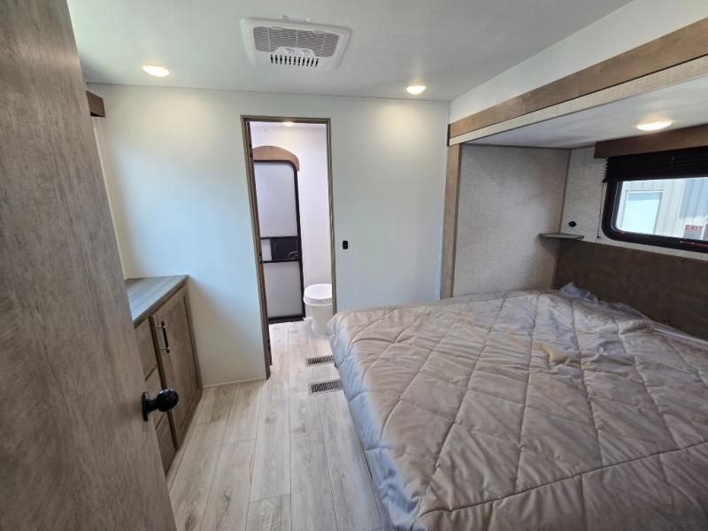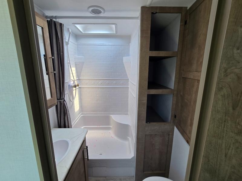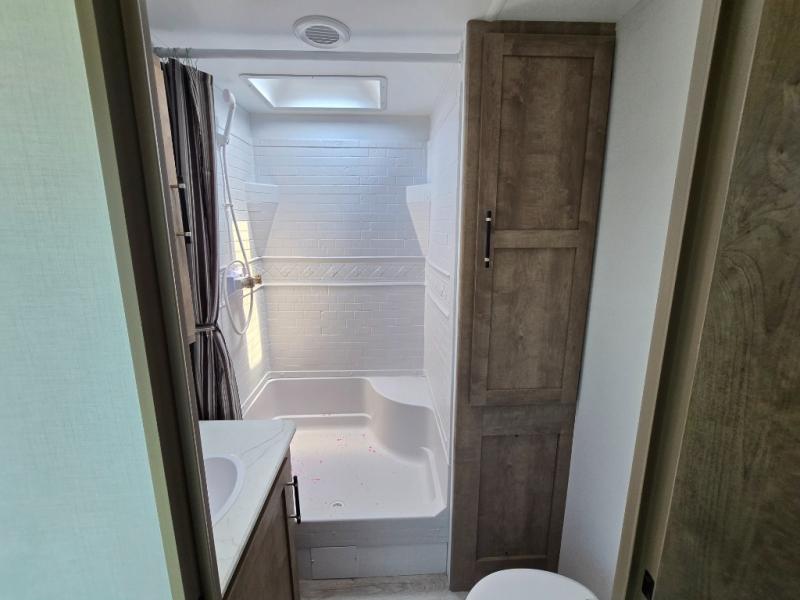 With any Springdale travel trailer by Keystone you will enjoy convenient amenities and comfortable camping features at every turn. The aluminum exterior will be easy to clean, and the power awning provides protection against the hot summer sun. There is also an exterior shower, a walkable roof, and an XL entry assist handle to safely enter and exit the unit. You will find many comforts inside, including a stainless steel sink, ample storage space for your belongings, and cozy sleeping spaces. Start a new adventure today in a Springdale travel trailer!