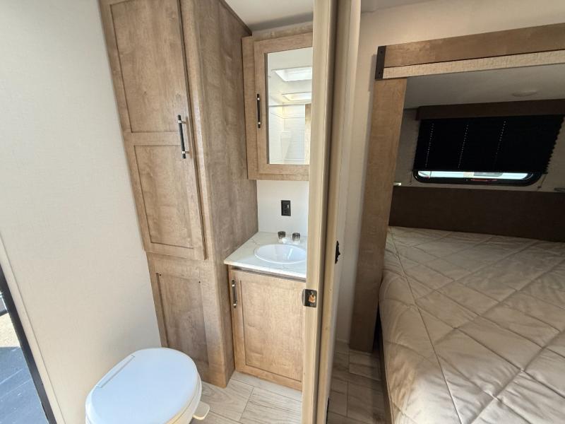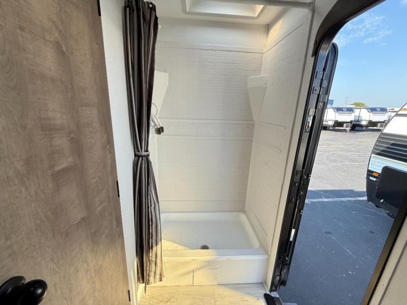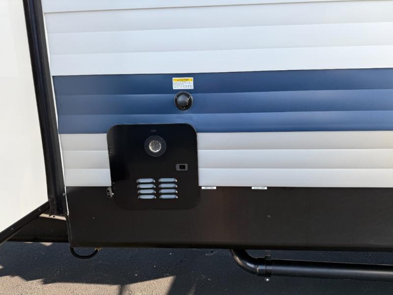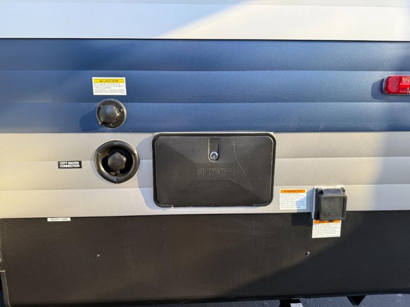 With any Springdale travel trailer by Keystone you will enjoy convenient amenities and comfortable camping features at every turn. The aluminum exterior will be easy to clean, and the power awning provides protection against the hot summer sun. There is also an exterior shower, a walkable roof, and an XL entry assist handle to safely enter and exit the unit. You will find many comforts inside, including a stainless steel sink, ample storage space for your belongings, and cozy sleeping spaces. Start a new adventure today in a Springdale travel trailer!