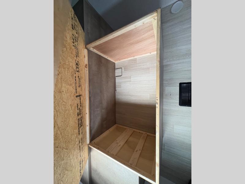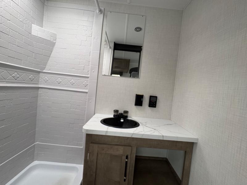 This trailer is perfect for your crew of four to six. There is a queen bed in the front bedroom, along with dual closets and nightstands to keep your things tidy. You can dine each day on the booth dinette, relax on the sofa, and house additional guests here at night. The kitchen includes everything you need to prepare meals each day, including a gas range, microwave, and a 10 cu. ft. 12V refrigerator for cold items. And the full bath on board lets you stay clean throughout each camping trip!