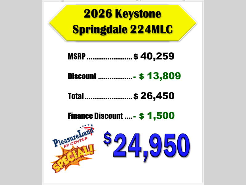 New 2026 Keystone RV Springdale Classic 224MLC Travel Trailer