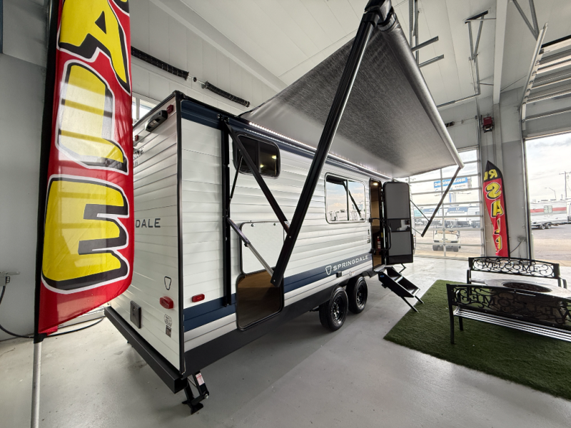 The Springdale Classic travel trailers by Keystone will provide you and your family many great outdoor experiences and it will also be kind to your pocketbook. Each one is constructed with a walkable roof, Solid Step entry steps and tinted safety glass windows. There are also heavy-duty stabilizer jacks, along with an outside shower, a power awning with LED lights, and Furrion backup camera prep. Inside, you'll find blackout night shades, pressed membrane premium countertops, a stainless-steel sink, and LED lighting to keep your space well lit.