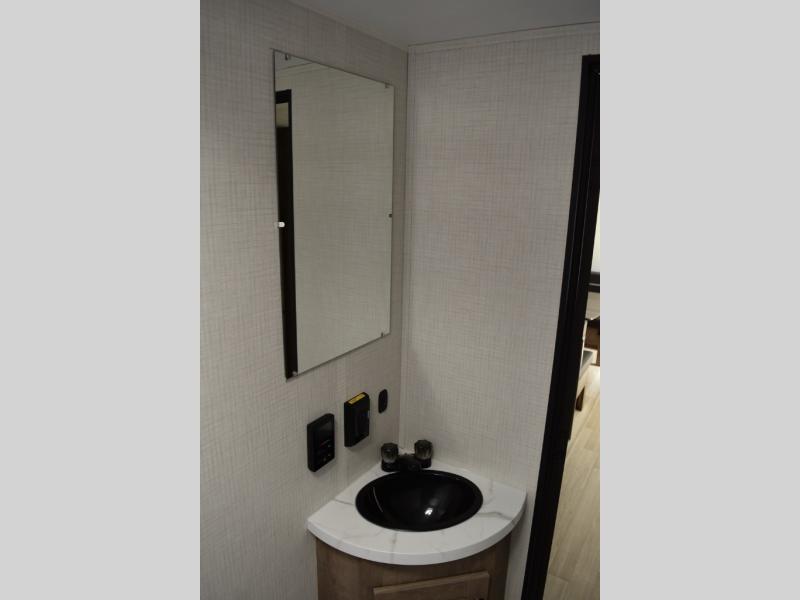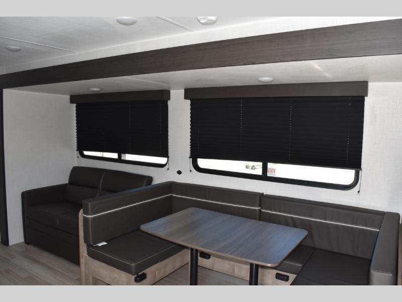 What could be better than camping with double-size bunks for guests? How about a front private bedroom for you, a full bath to clean up in, and a large slide out for maximum space! The chef of your group can prepare breakfast on the three burner gas range in the morning, or use the microwave if you're on the go. There is a U-shaped dinette to dine at, or you can take your plate outdoors to sit under the power awning.