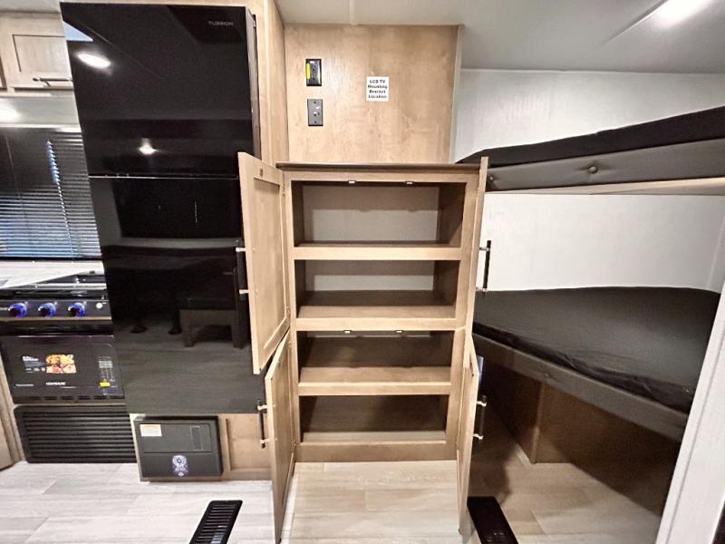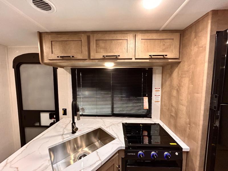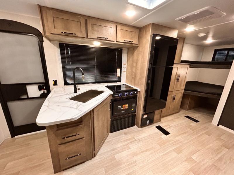 REAR TWIN BUNKS / OUTDOOR KITCHEN / LARGE SLIDE OUT / POWER TONGUE JACKS / REFER - 12V - 10CF / 220W SOLAR