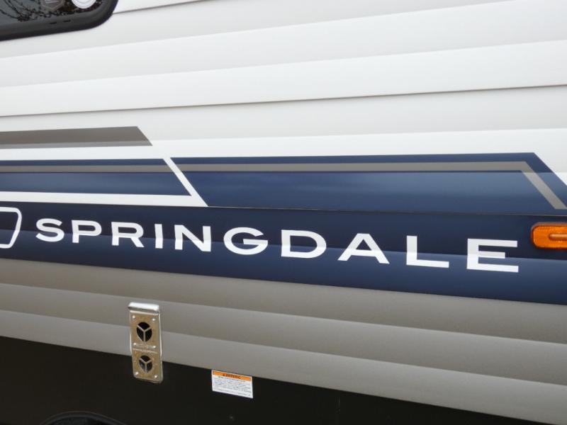 The Springdale Classic travel trailers by Keystone will provide you and your family many great outdoor experiences and it will also be kind to your pocketbook. Each one is constructed with an aluminum exterior, a walkable roof, and an I-beam frame with stamped steel cross-members and outriggers for added strength. There are also heavy duty stabilizer jacks and power tongue jacks outside, along with an XL entry assist handle for added convenience. Each travel trailer includes LED lighting, bedside outlets, and blackout night shades inside that will provide you with more privacy at night.
