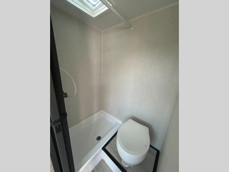Your small crew will love camping in this lightweight travel trailer. There is a full-size bed up front with a folding bunk above plus a closet at the foot of the bed to keep your things out of the way. The two burner gas cooktop and microwave oven will let you make breakfast in the morning, and the folding table with two chairs provides a place to dine together. And a private bath with a shower and toilet lets you easily clean up after a day outdoors!