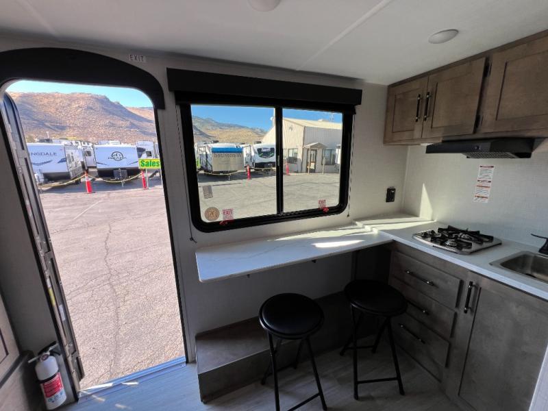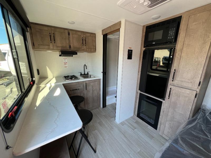 Step into the 2026 Springdale 1310RK and you’re welcomed by a bright, efficient layout that feels thoughtfully crafted for easy travel. The rear kitchen is surprisingly functional for a trailer of this size, offering well-placed counter space, storage, and everything you need to prepare simple meals on the go. The mid-living area provides a comfortable place to relax, with seating arranged to make the most of the natural light coming through the windows. Every inch feels purposeful, giving the trailer a clean, open feel that makes settling in effortless.