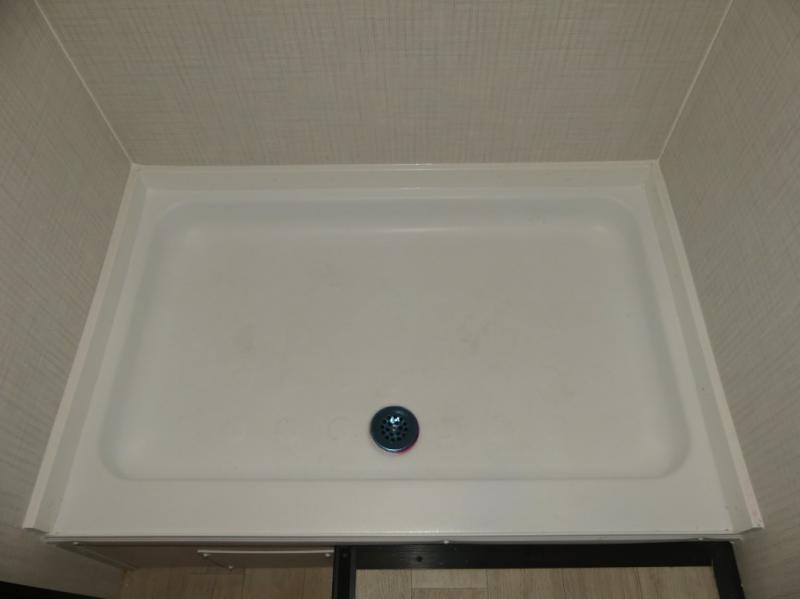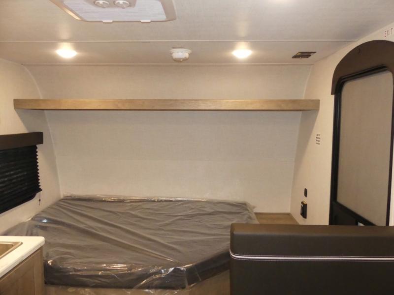 This lightweight travel trailer is perfect for three happy campers. You'll enjoy the front full-size bed, while your guest or little ones take the booth dinette when it's not being used to dine at. There is also a shelf above the bed to keep your things organized. A private bath includes a shower with a toilet so you can freshen up each day without having to leave your camper. You can make your meals on the two burner gas cooktop or in the microwave oven, then take your plate outdoors to eat under the 8' power awning!