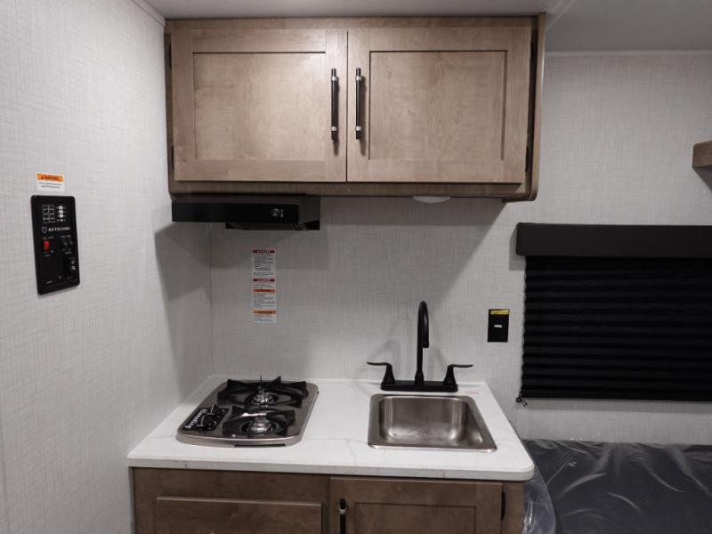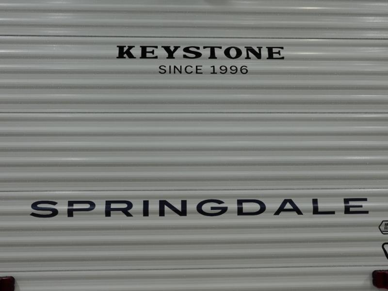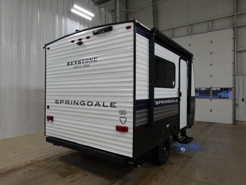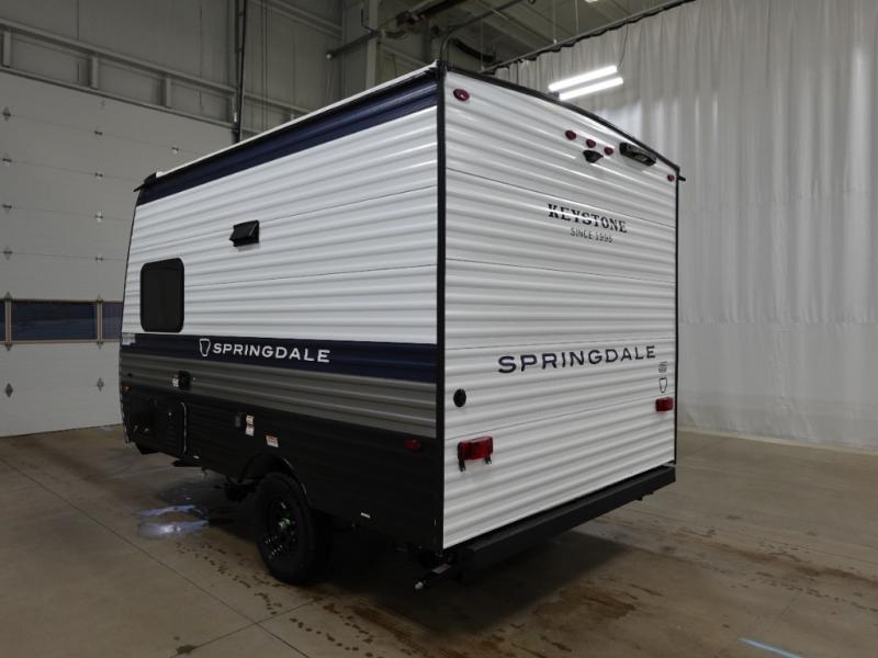With any Springdale Mini travel trailer by Keystone, you will enjoy lightweight towing thanks to their single-axle! The AlphaPly TPO roof membrane is ultra durable, and the power awning will provide protection from the sun as you relax in your camp chairs outside. Each model includes blackout night shades, LED lighting, plus many more interior comforts. There is also a roof A/C and 20K BTU furnace to keep you comfortable, plus a tankless water heater for endless hot showers!