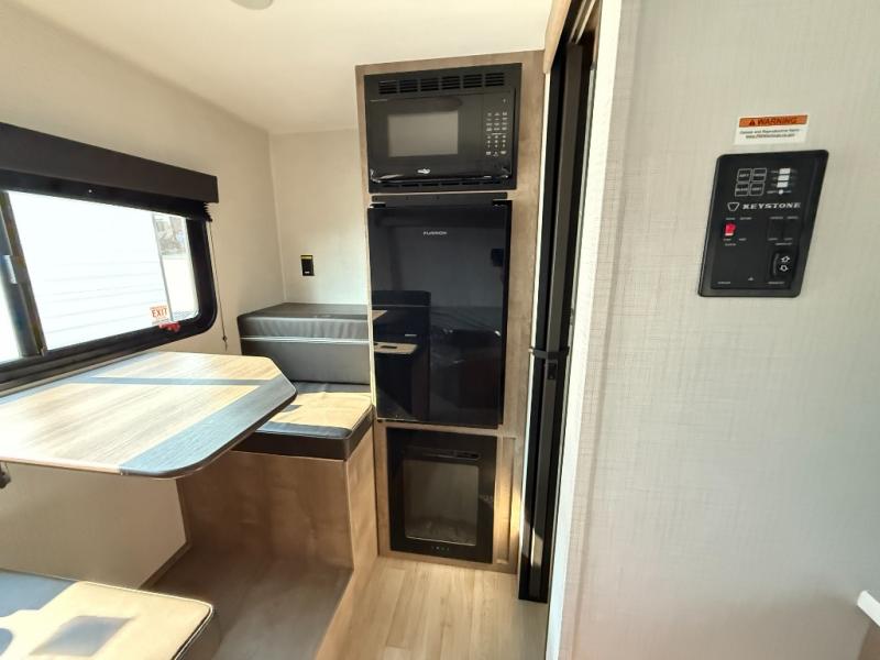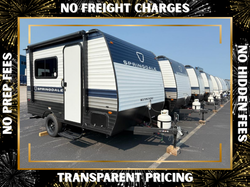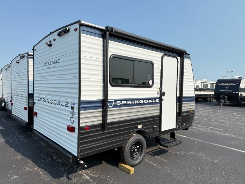 With any Springdale Mini travel trailer by Keystone, you will enjoy lightweight towing thanks to their single-axle! The AlphaPly TPO roof membrane is ultra durable, and the power awning will provide protection from the sun as you relax in your camp chairs outside. Each model includes blackout night shades, LED lighting, plus many more interior comforts. There is also a roof A/C and 20K BTU furnace to keep you comfortable, plus a tankless water heater for endless hot showers!