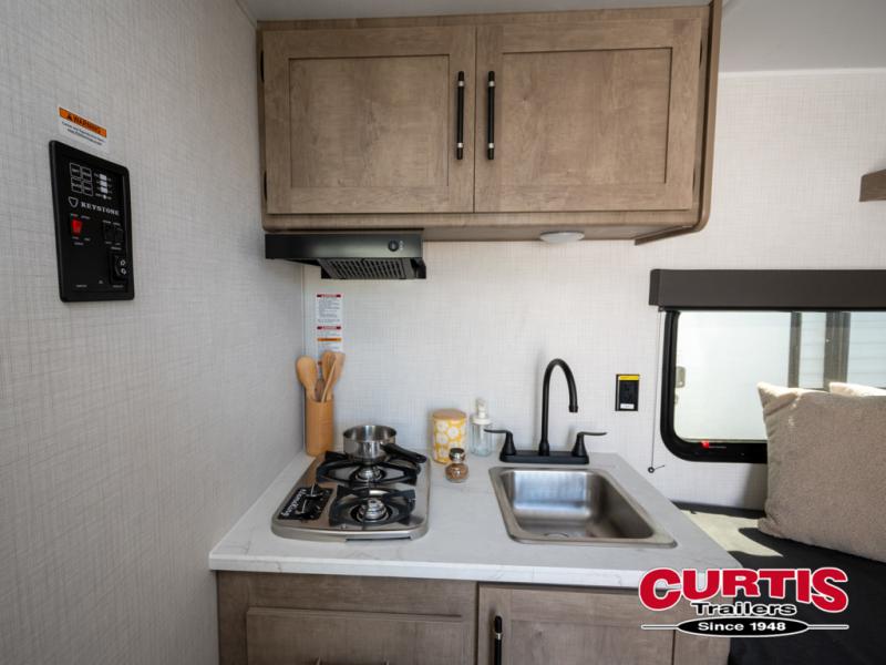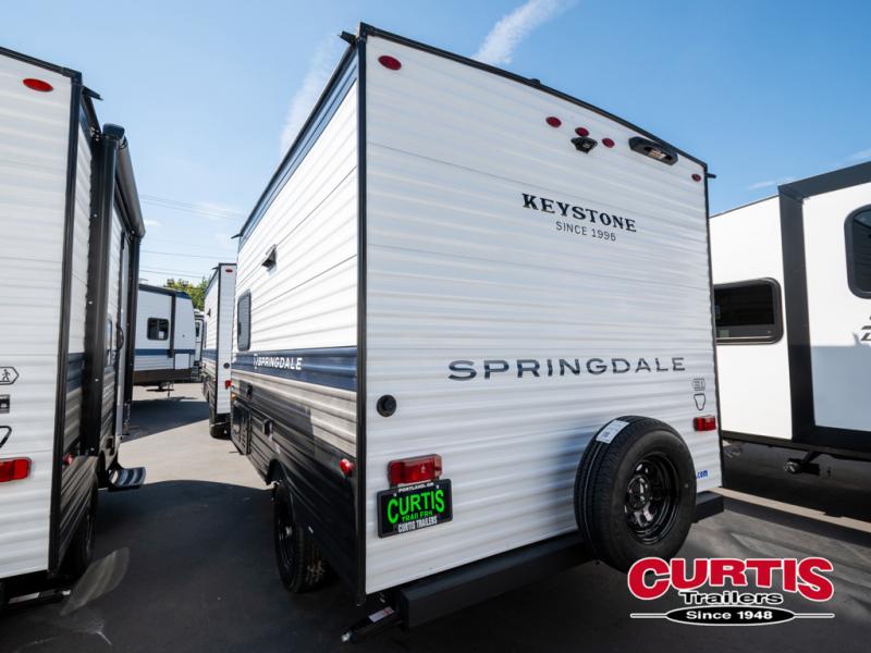 With any Springdale Mini travel trailer by Keystone, you will enjoy lightweight towing thanks to their single-axle! The AlphaPly TPO roof membrane is ultra durable, and the power awning will provide protection from the sun as you relax in your camp chairs outside. Each model includes blackout night shades, LED lighting, plus many more interior comforts. There is also a roof A/C and 20K BTU furnace to keep you comfortable, plus a tankless water heater for endless hot showers!