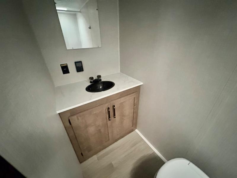 Rear Bathroom – The full bath includes a shower, toilet, and vanity, offering convenience and privacy wherever you travel.