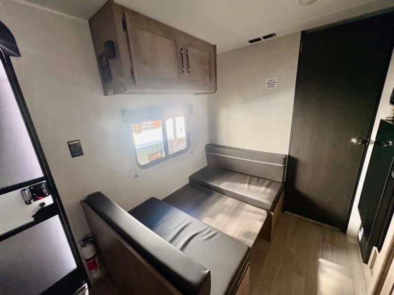 Cozy Dinette – The booth dinette provides a comfortable spot for meals, games, or planning your next destination — and it easily converts into an additional sleeping space if needed.