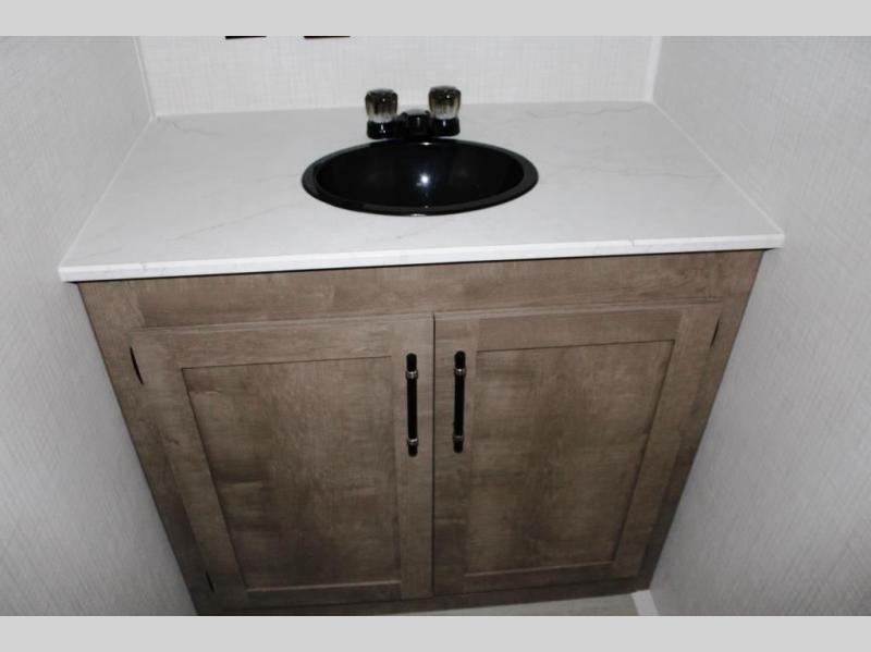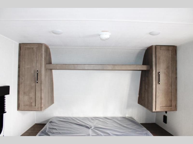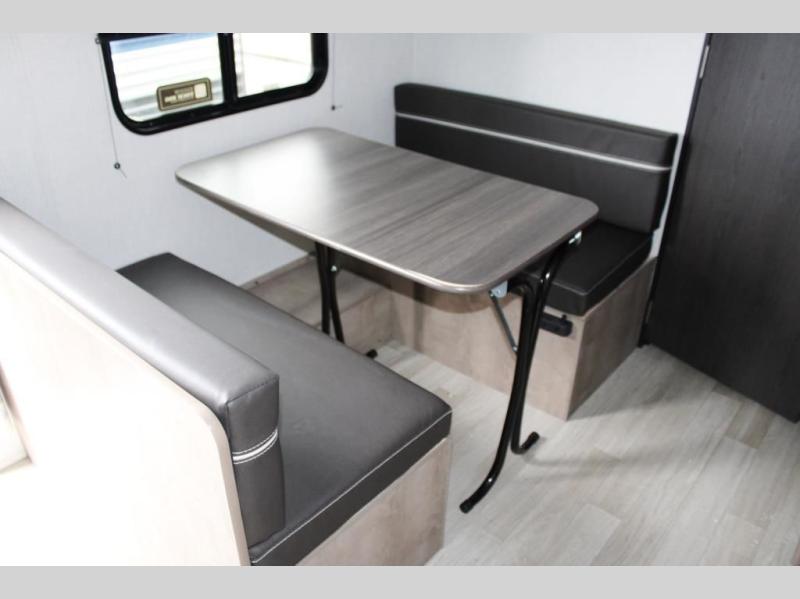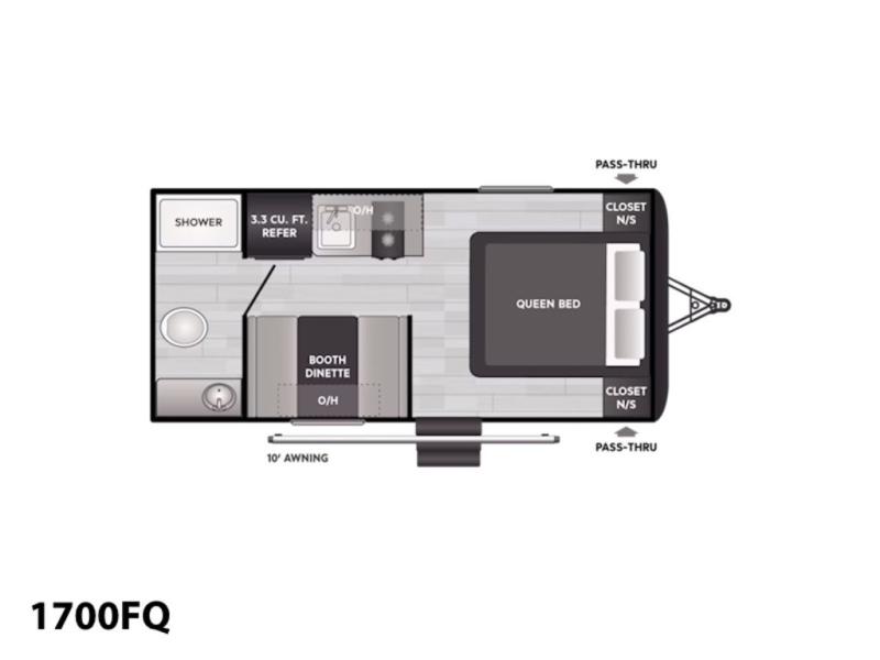 This cozy trailer for two or four will have you out enjoying nature easily. There is a queen bed for you, and the booth dinette can easily transform into a bed for one or two more campers if needed at night. The rear private bath features a shower and vanity with sink, plus toilet so no late night trips to the campground bathroom. There is ample storage in overhead cabinets on both sides of the trailer, as well as dual closets and nightstands on either side of the bed. A 10' awning offers even more living space outside. Grab a couple of camp chairs and enjoy hanging out with your campground neighbors or enjoying a campfire.