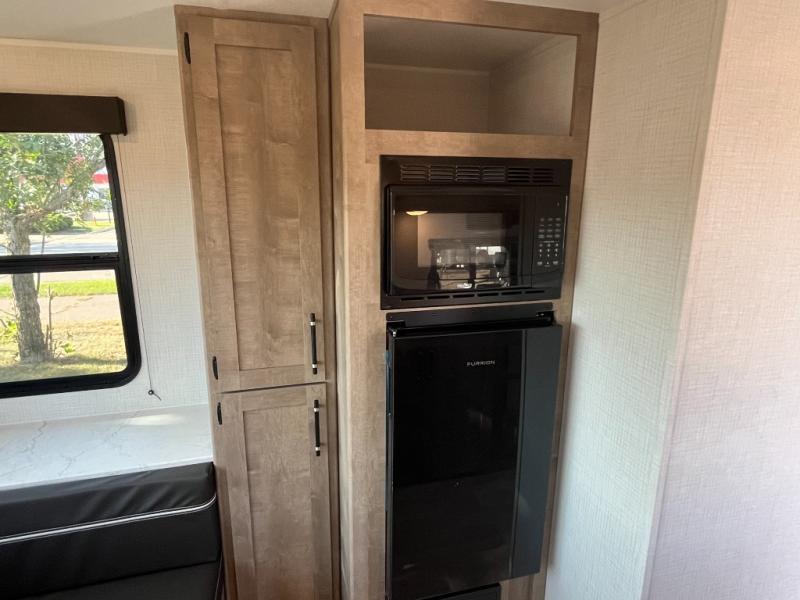 With any Springdale Mini travel trailer by Keystone, you will enjoy lightweight towing thanks to their single-axle! The AlphaPly TPO roof membrane is ultra durable, and the power awning will provide protection from the sun as you relax in your camp chairs outside. Each model includes blackout night shades, LED lighting, plus many more interior comforts. There is also a roof A/C and 20K BTU furnace to keep you comfortable, plus a tankless water heater for endless hot showers!